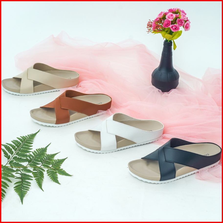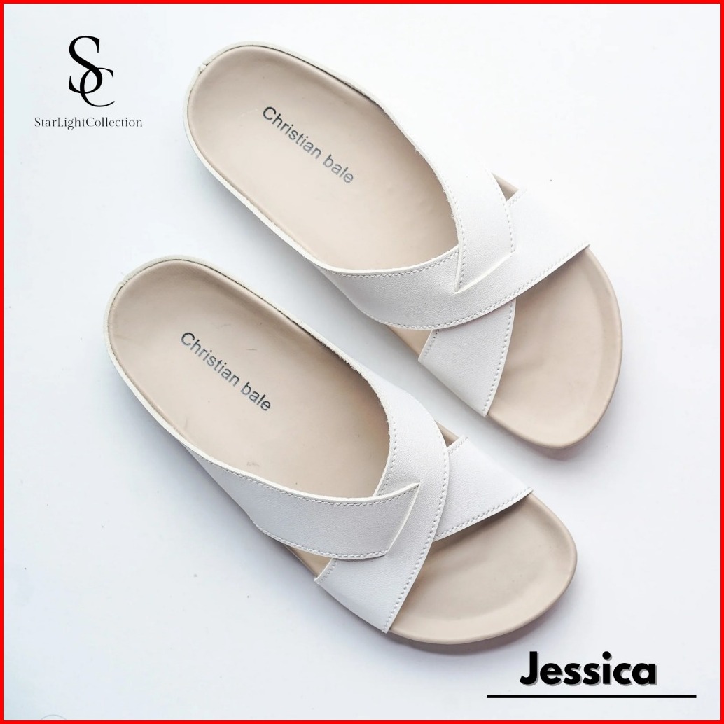 Christian Bale Jessica Sandal Tali Wanita Casual Ban Dua Silang Sendal Slop Cewek Anti Slip Kekinian