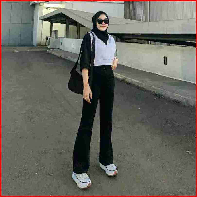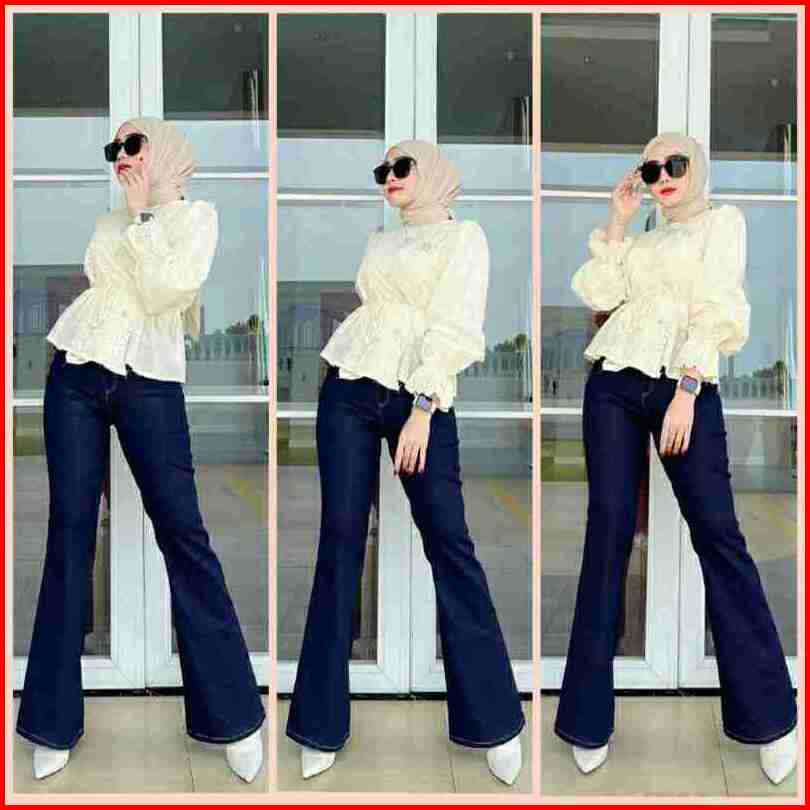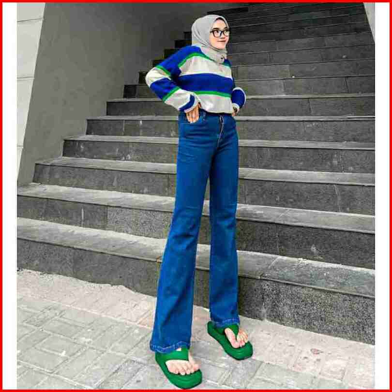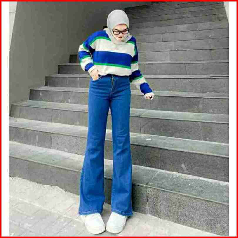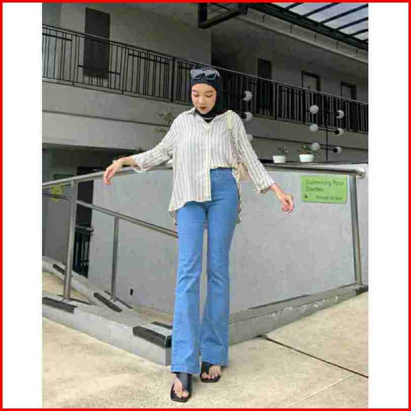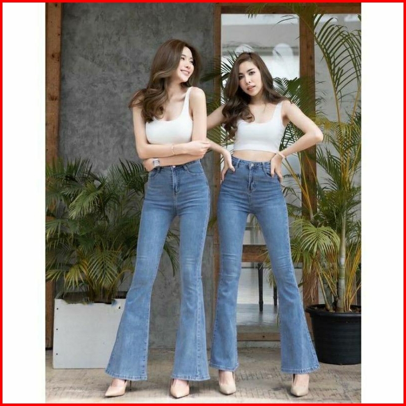 Celana Higwaist Jeans Cutbray Wanita Flare