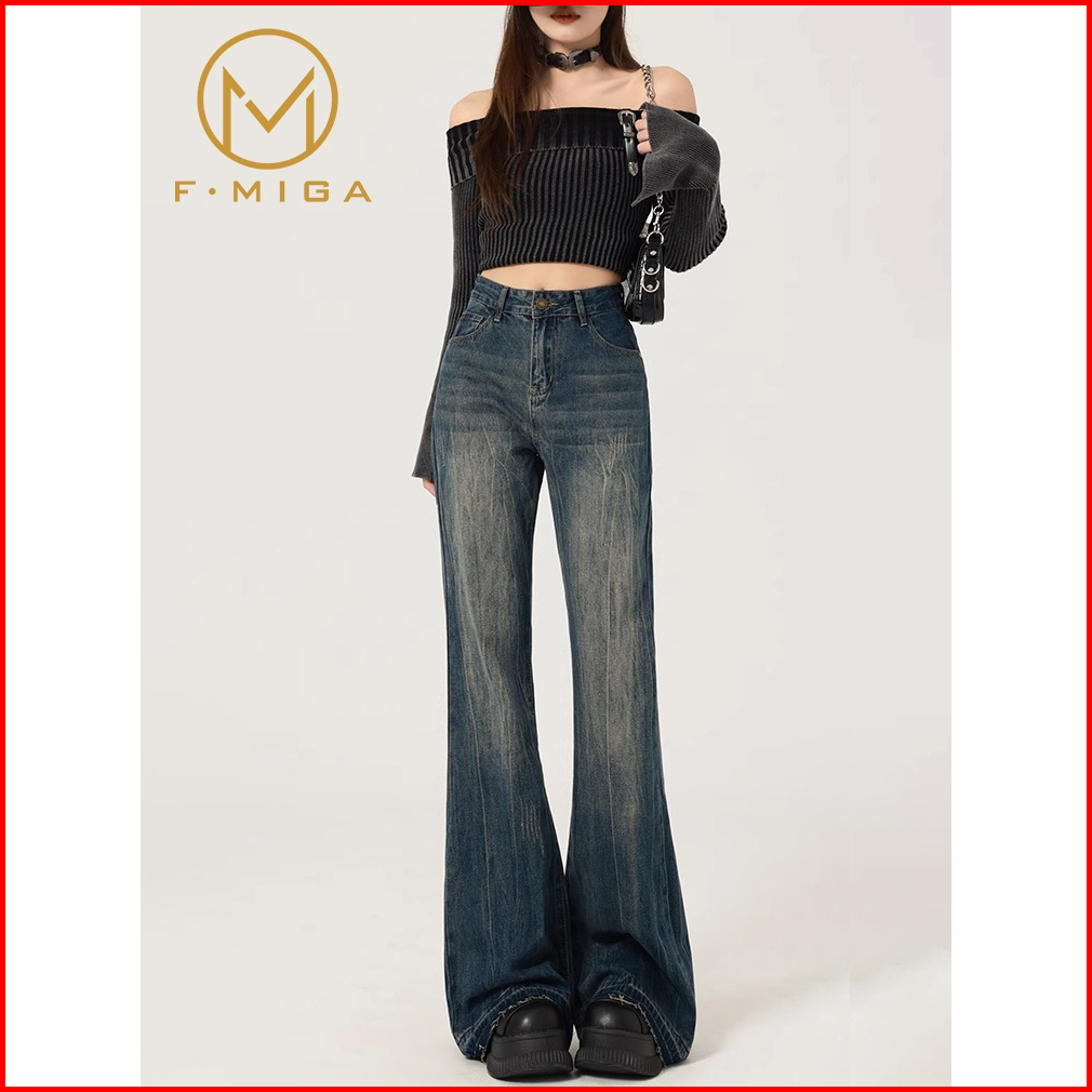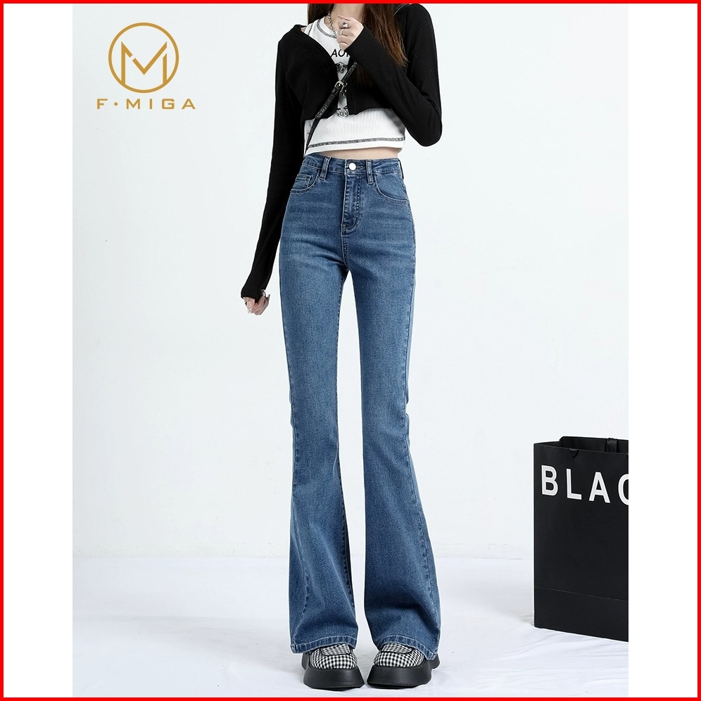 F Miga C62 Hitam Cutbray Highwaist Flare Jeans Wanita