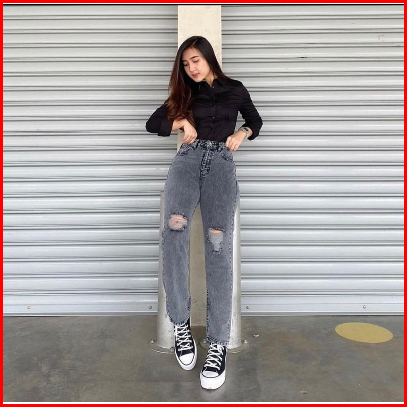 Thegirlhouse - Kulot Highwaist Loose Jeans Destroy Naura