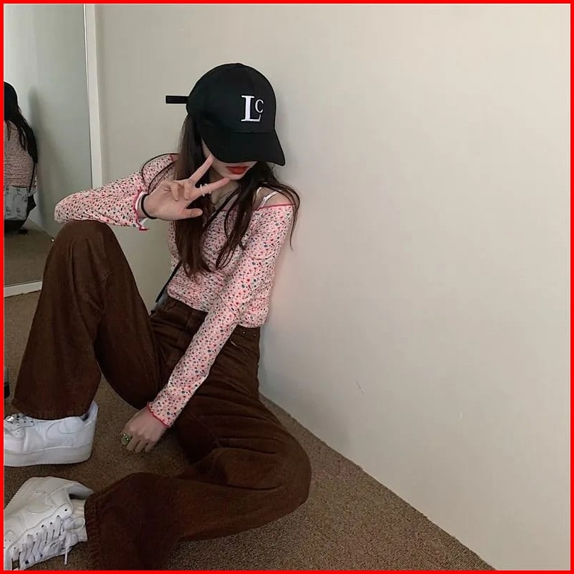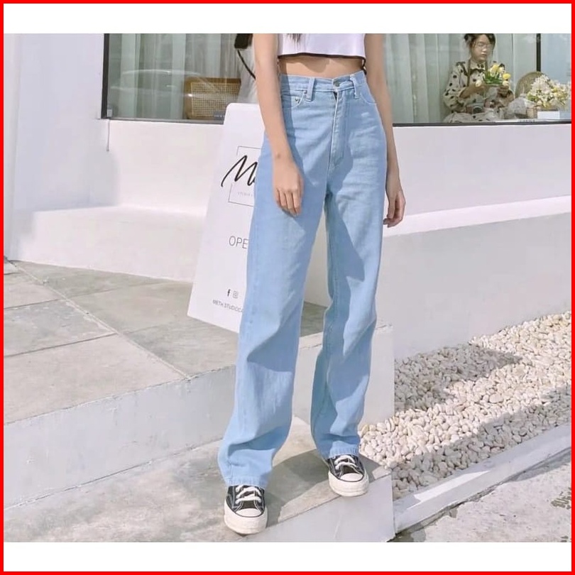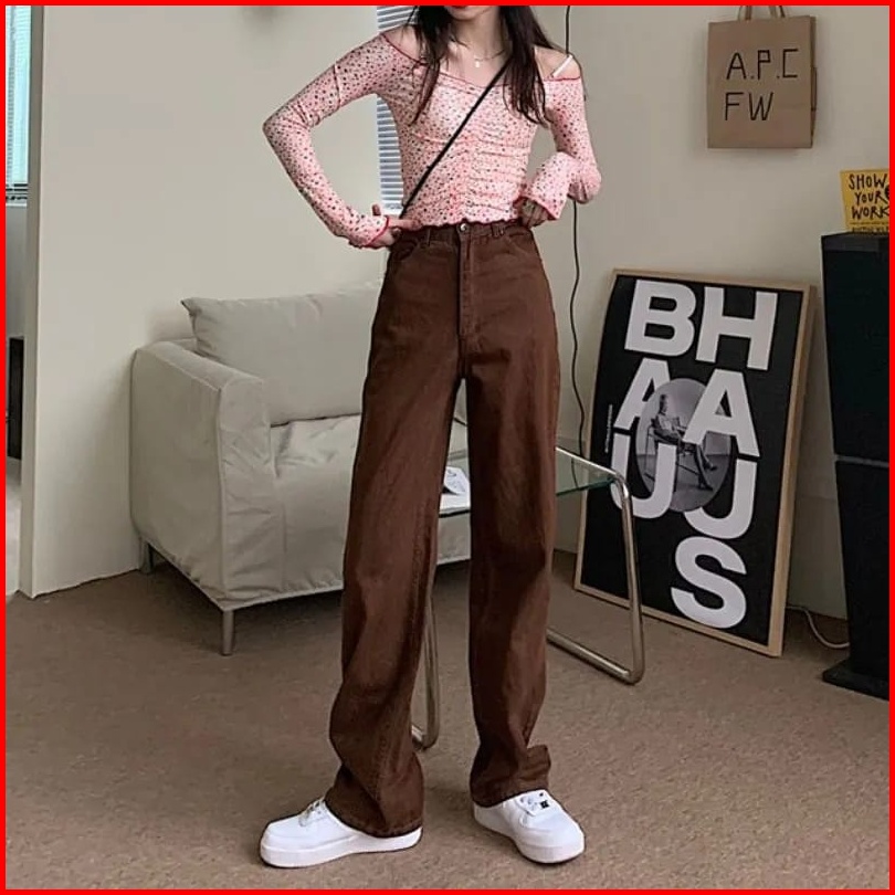 Highwaist Kulot Jeans Wanita Loose Coklat