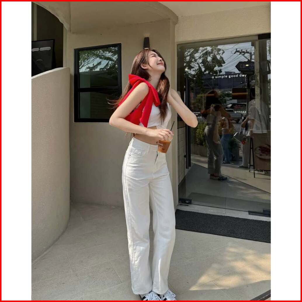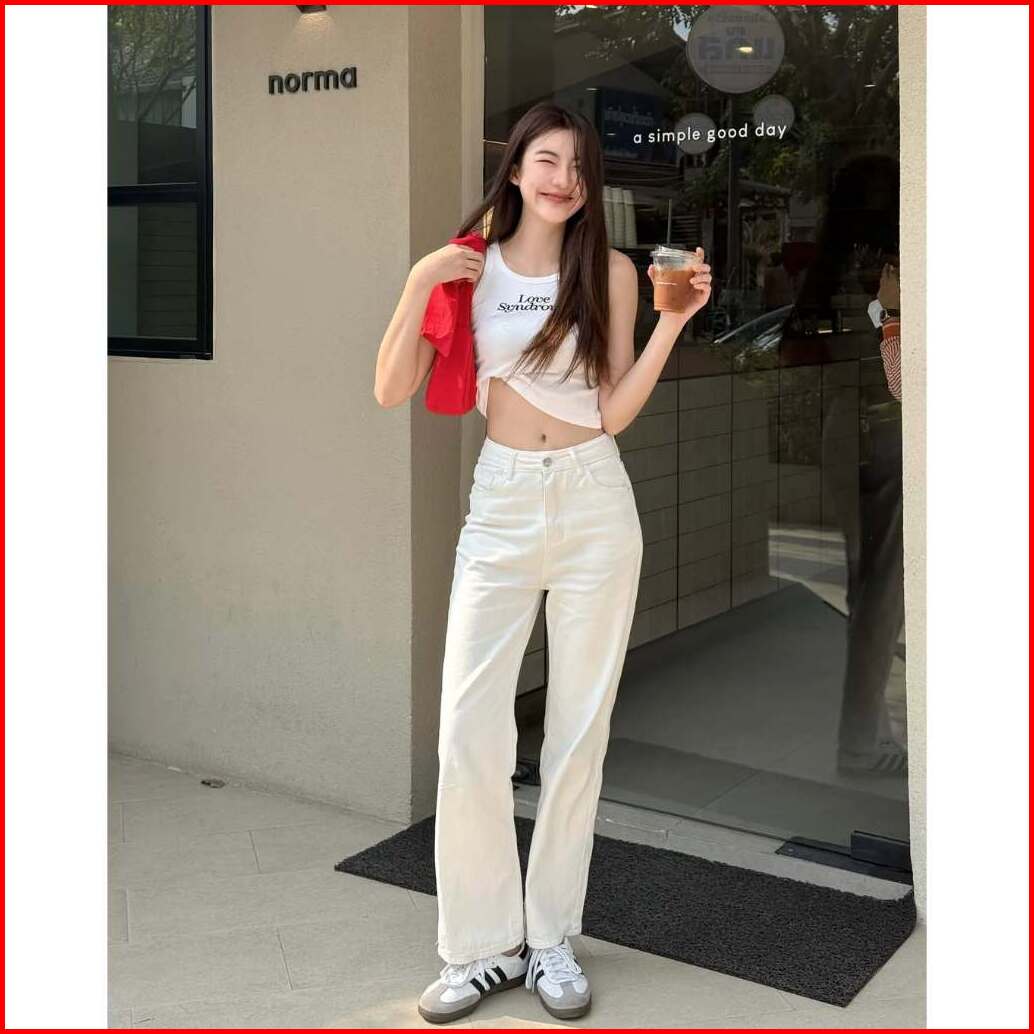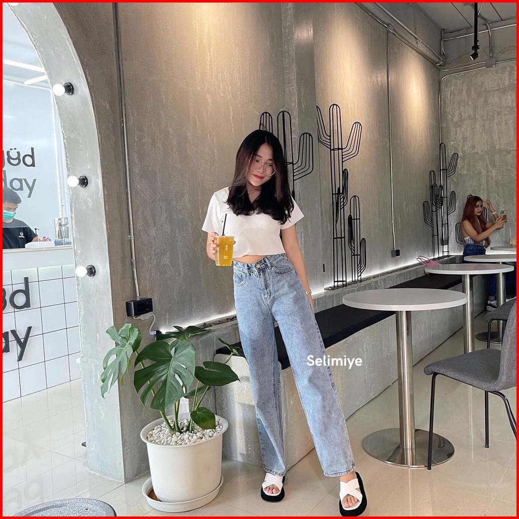 Celana Highwaist Kulot Jeans Wanita Putih