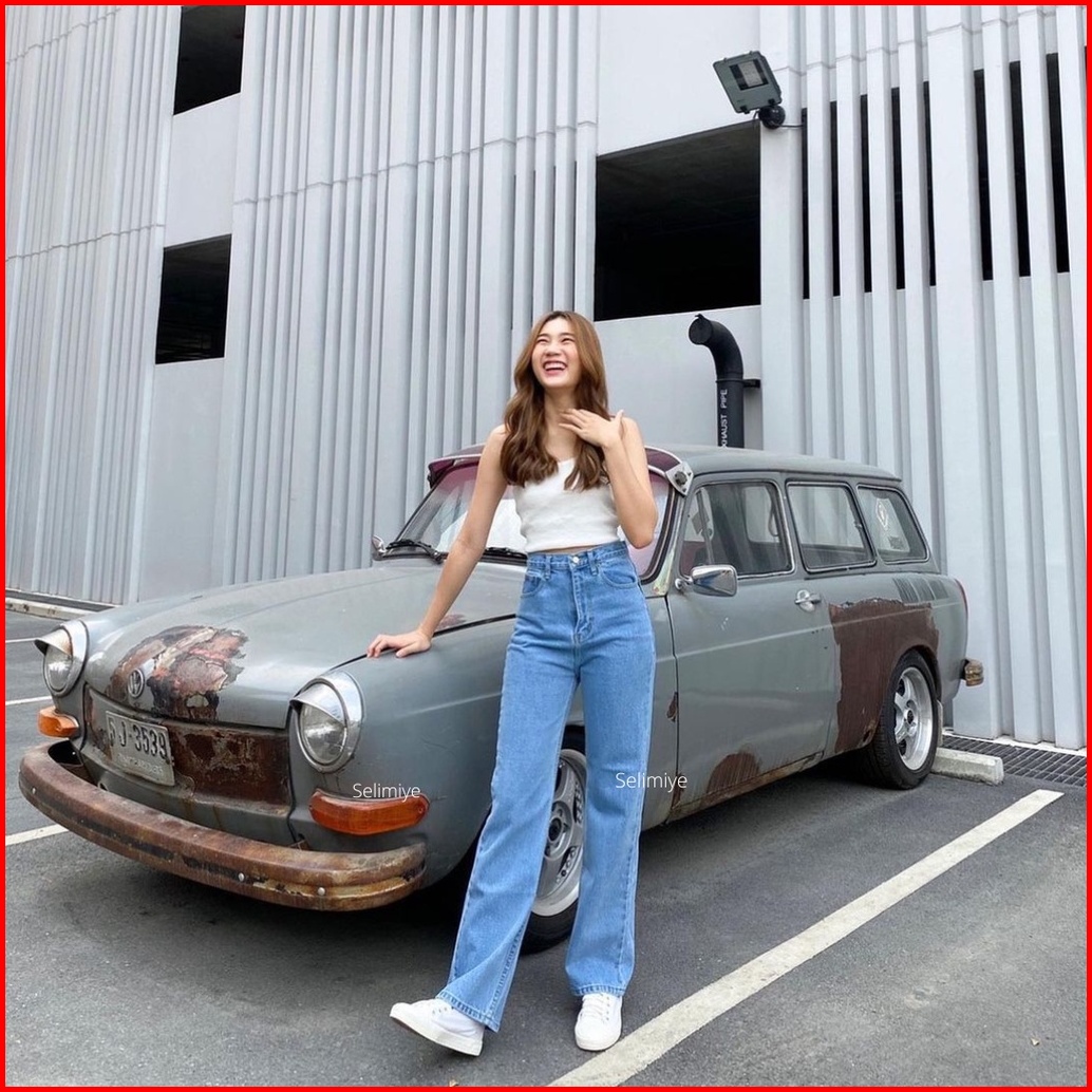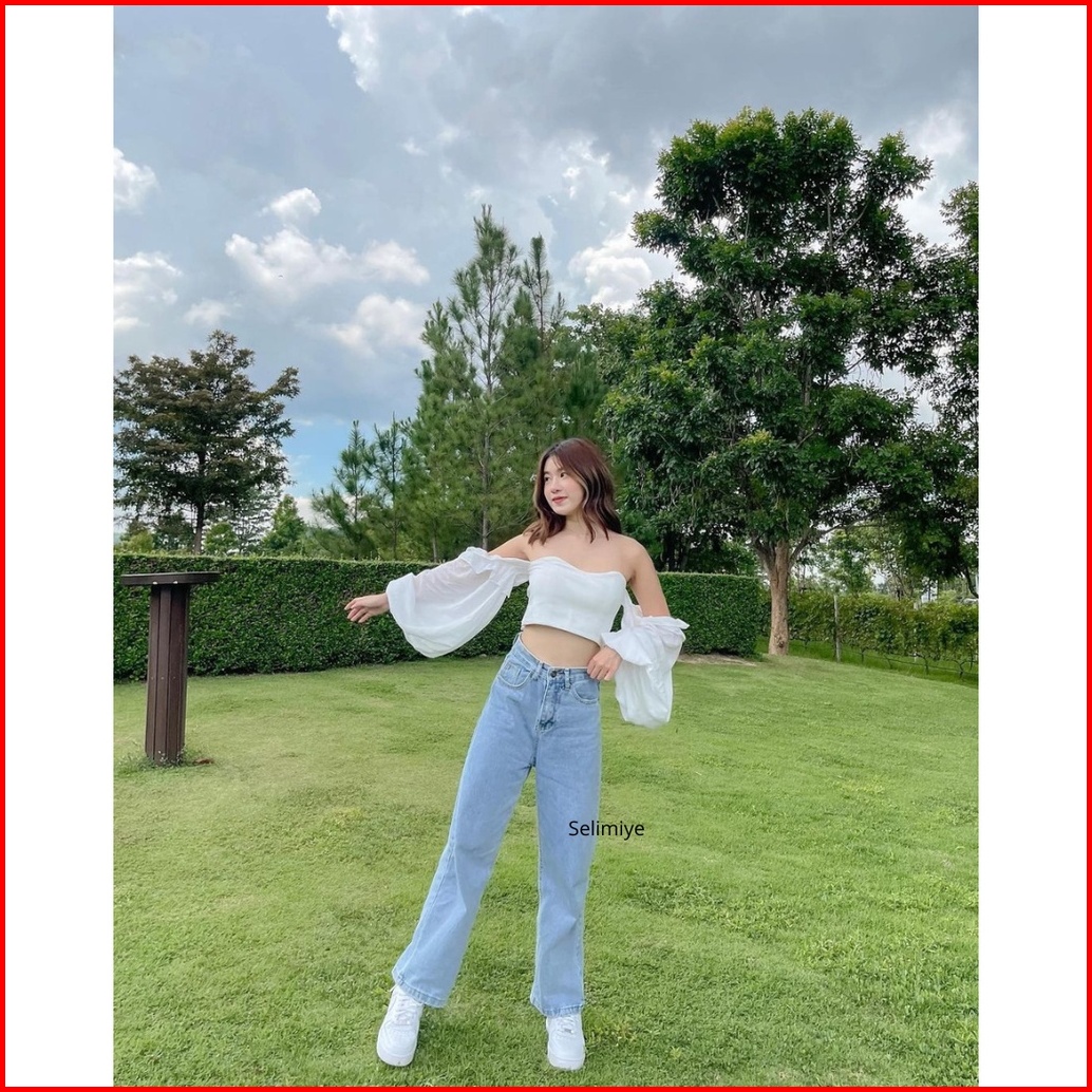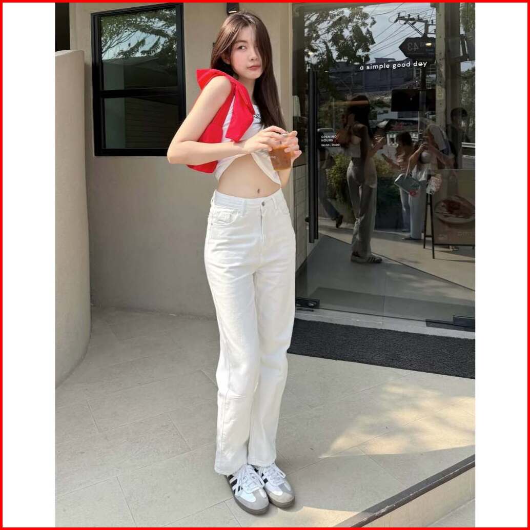 Celana Highwaist Kulot Jeans Wanita Putih