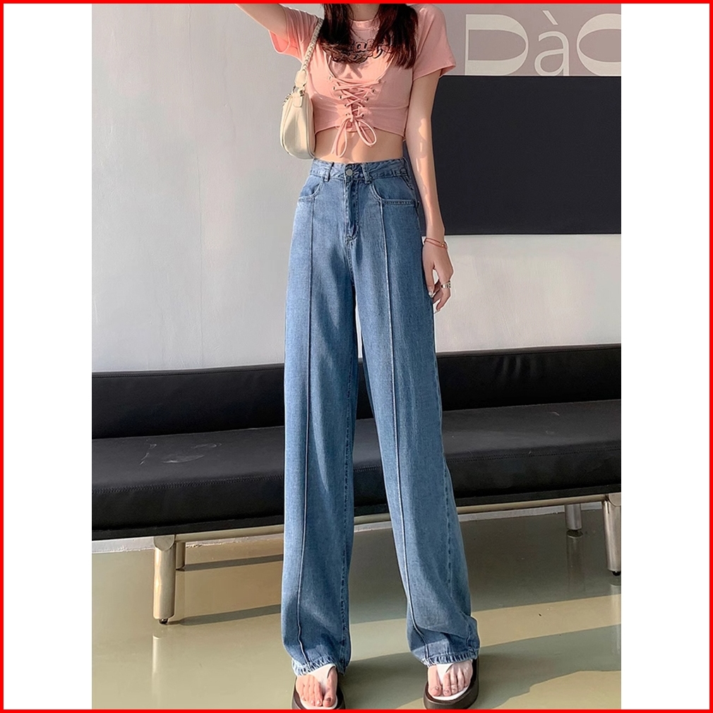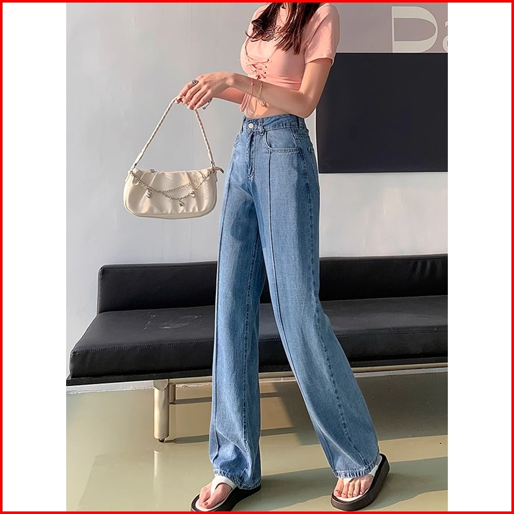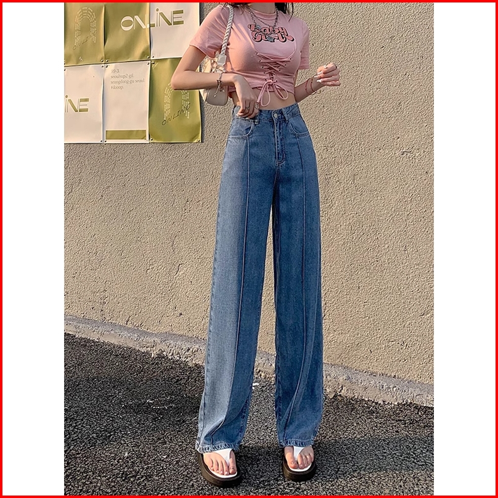 Ct Jeans Kulot Jeans Wanita Highwaist Motif List Depan Model Loose Pants Korean Style