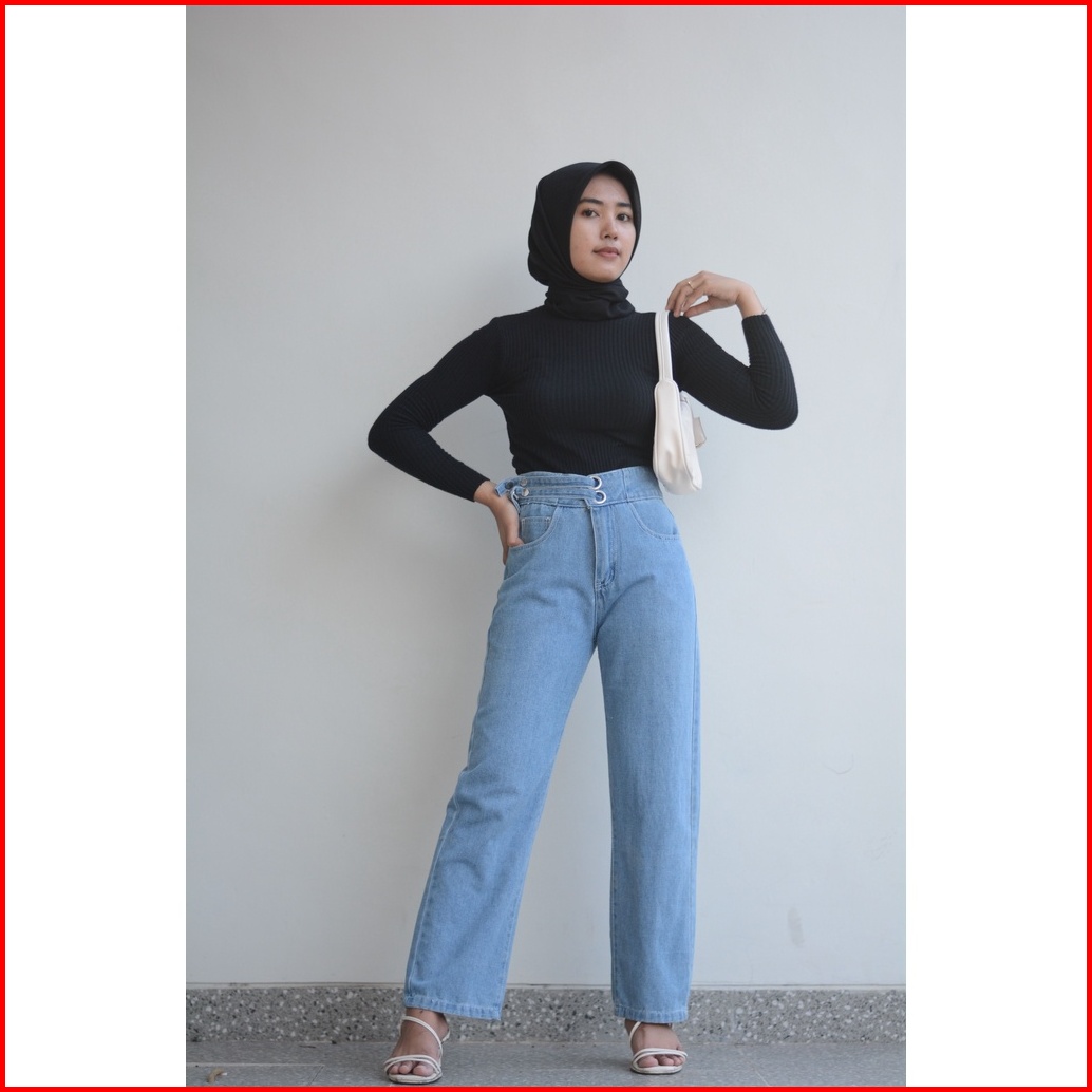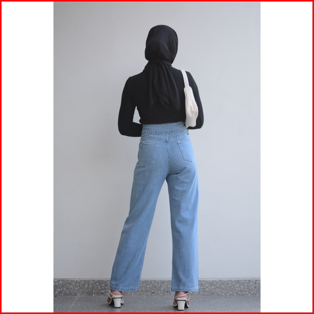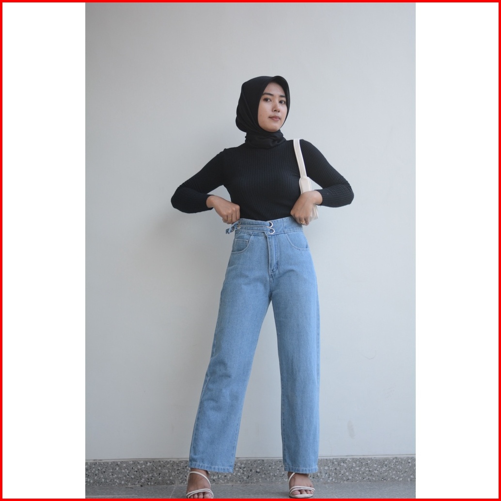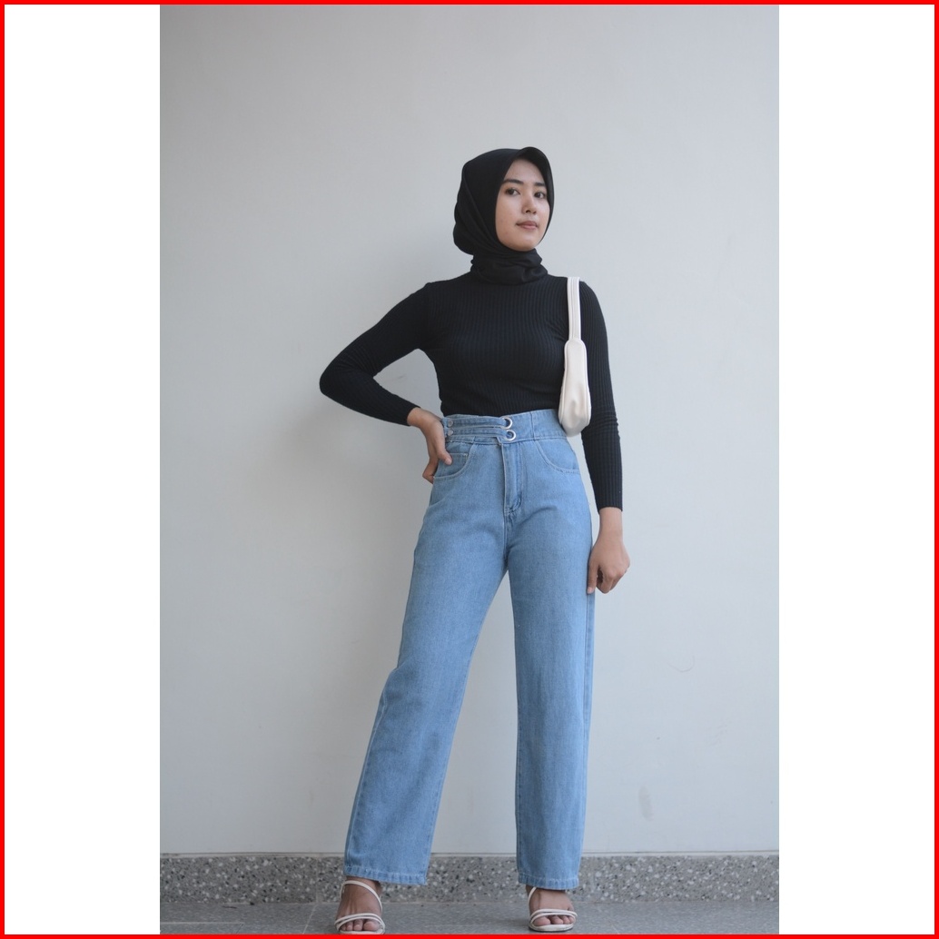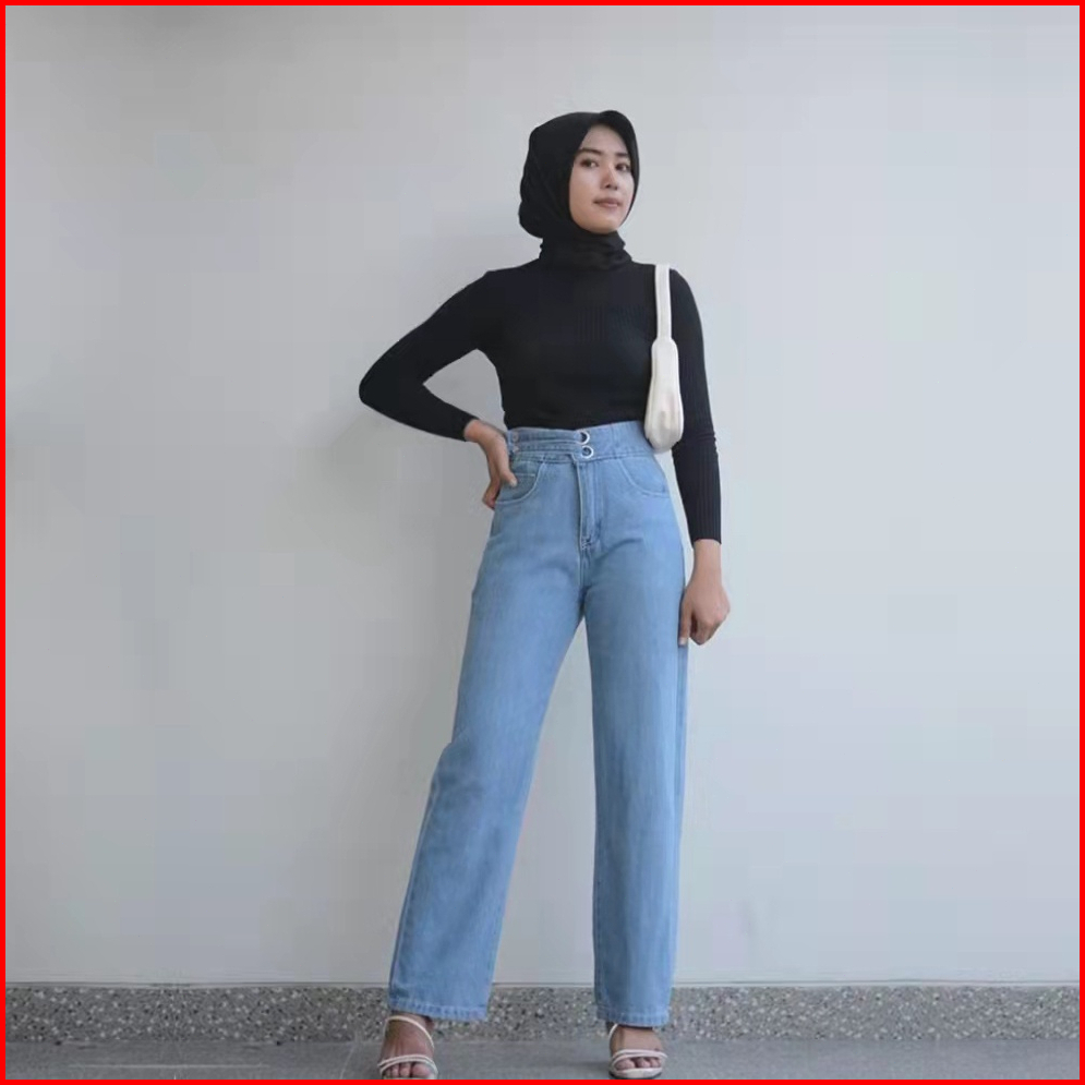 Ct Jeans Celana Jeans Kulot Highwaist Wanita Model Loose Pants Warna Light Blue
