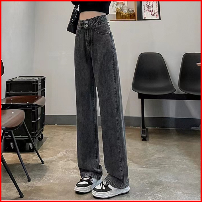 Xiaozhainv Korea Celana Denim High Waist Jeans High Waist Loose Jeans 8702
