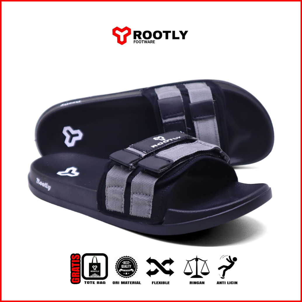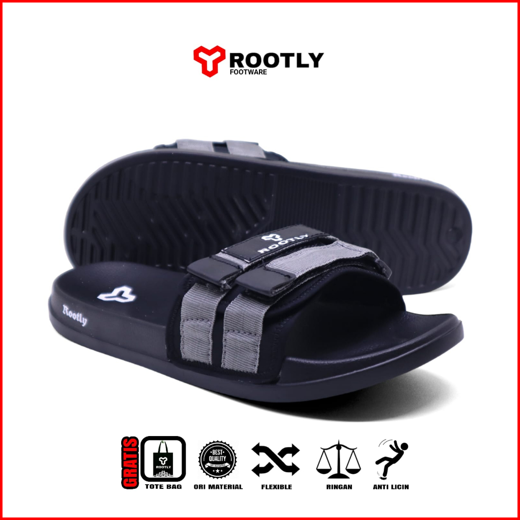 Rootly - Sandal Pria Slide Velcro Webing Abu Staylist