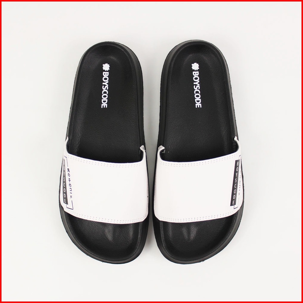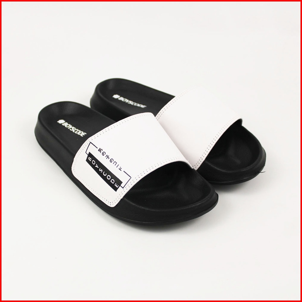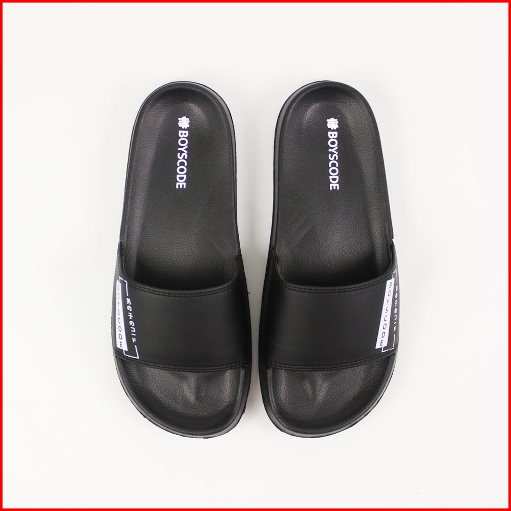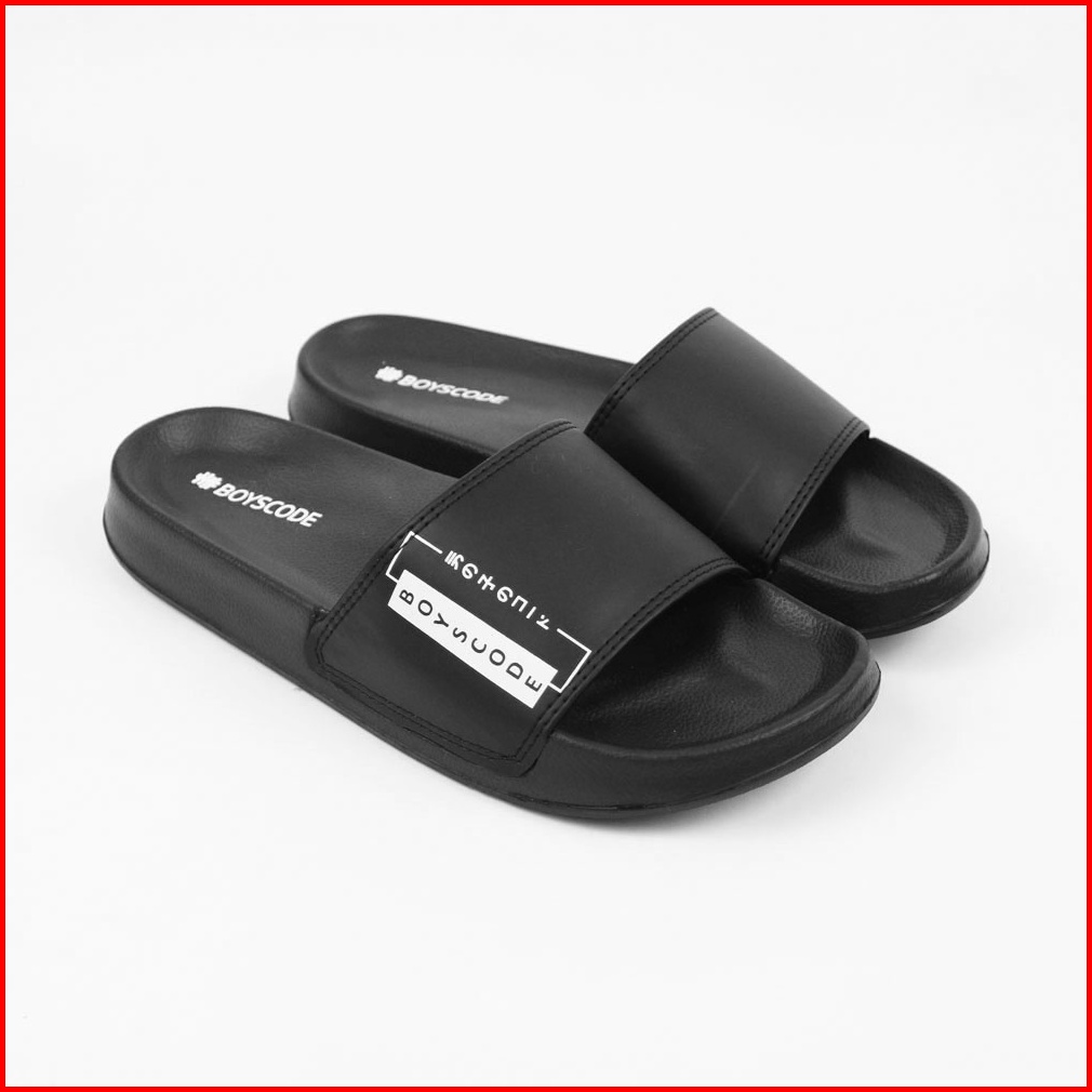 Boyscode Sendal Selop Pria Original Footwear Kanji Japan Hitam Putih Slip On Slide