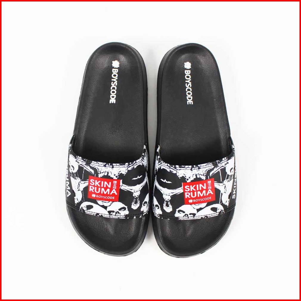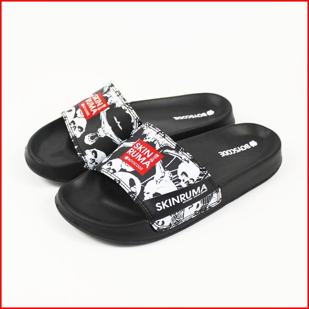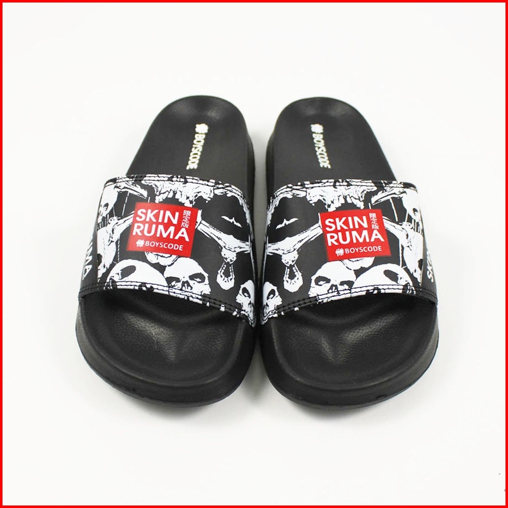 Boyscode X Skinruma Sendal Selop Pria Wanita Distro Black Skull Slip On Pria Slide Pria