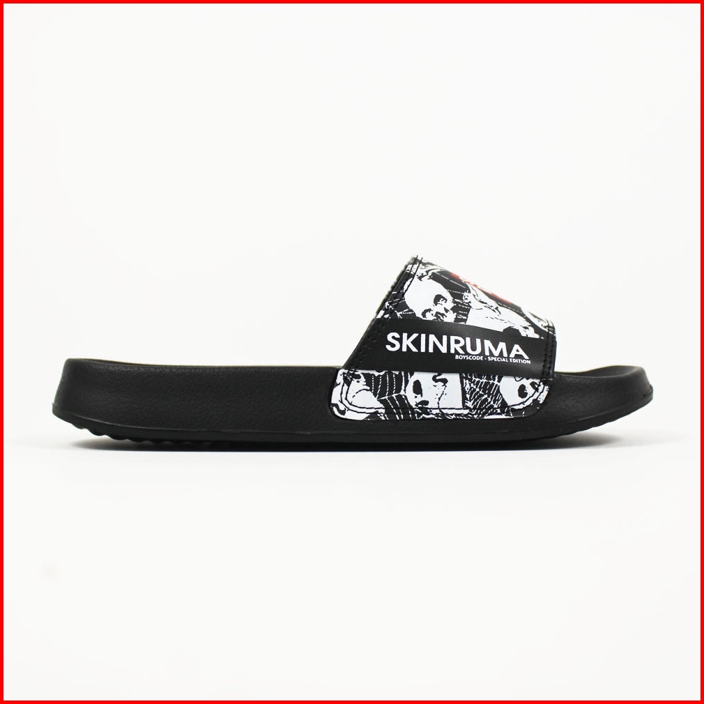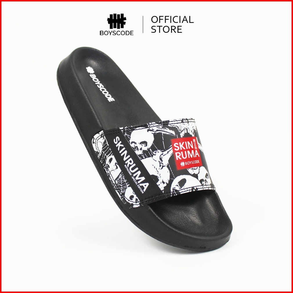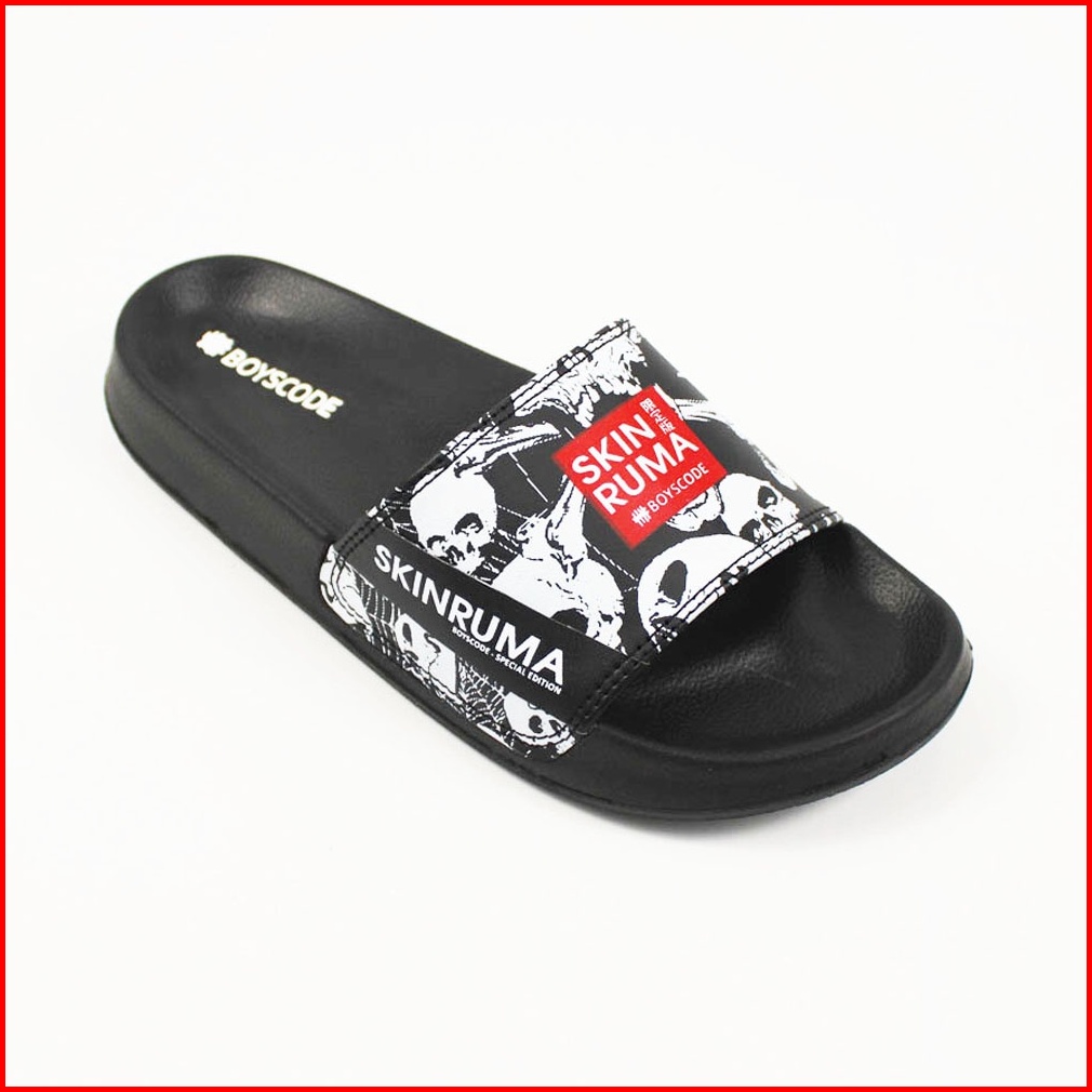 Boyscode X Skinruma Sendal Selop Pria Wanita Distro Black Skull Slip On Pria Slide Pria