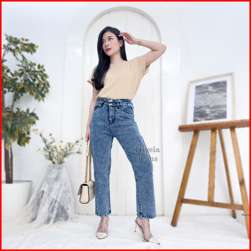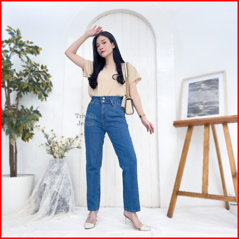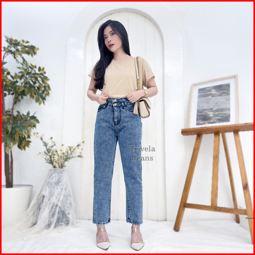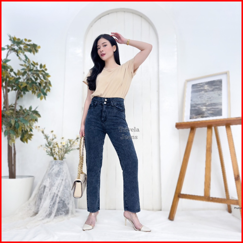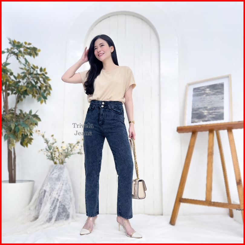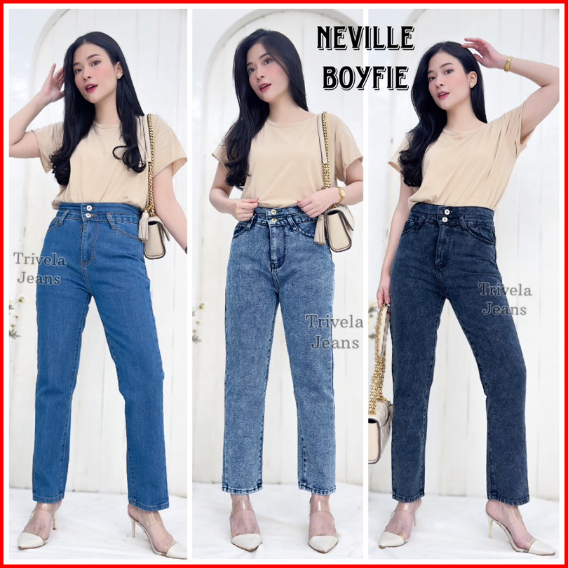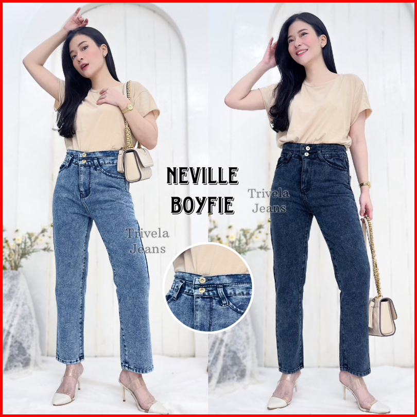 Celana Boyfriend Jeans Kancing 2 Highwaist 27-38 L Boyfriend Jeans 2 Buttons L Neville Boyfie