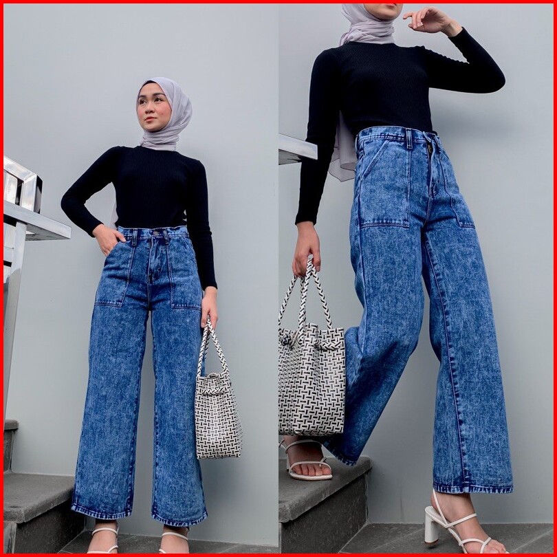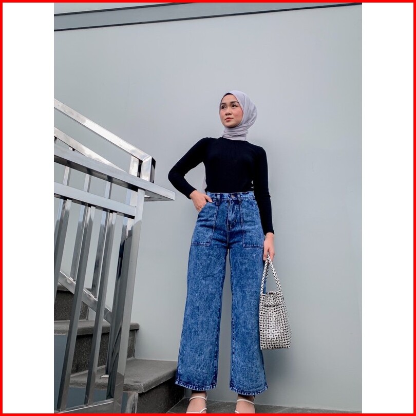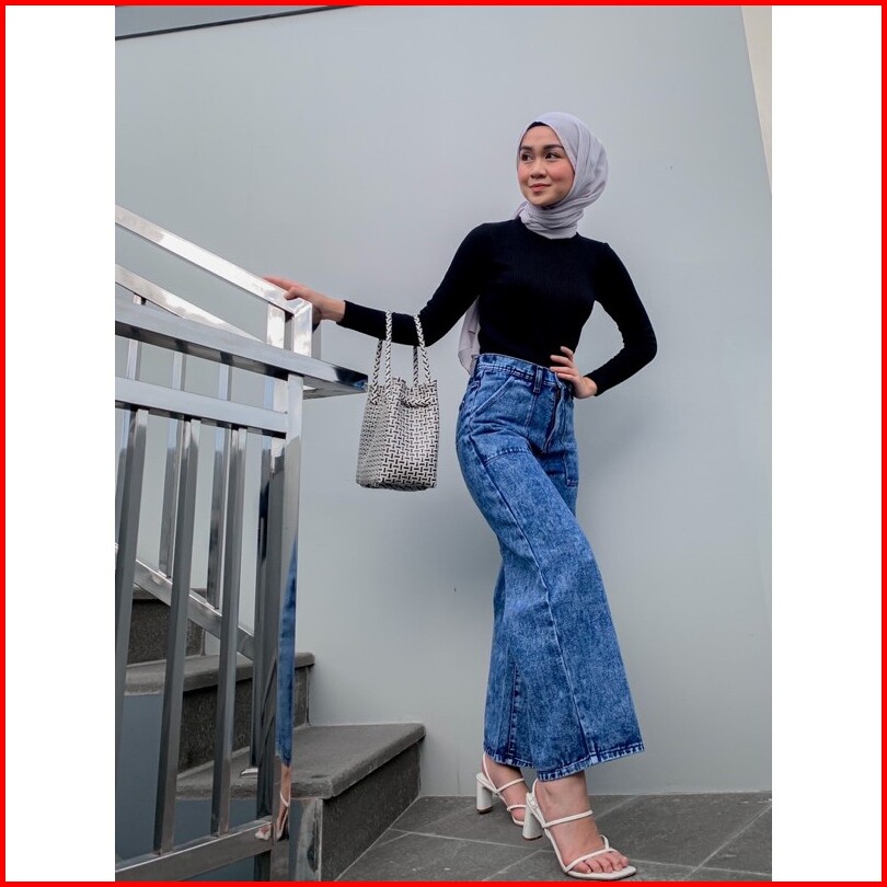 Kulot Jeans Kantong Tempel Snow Blue Alice