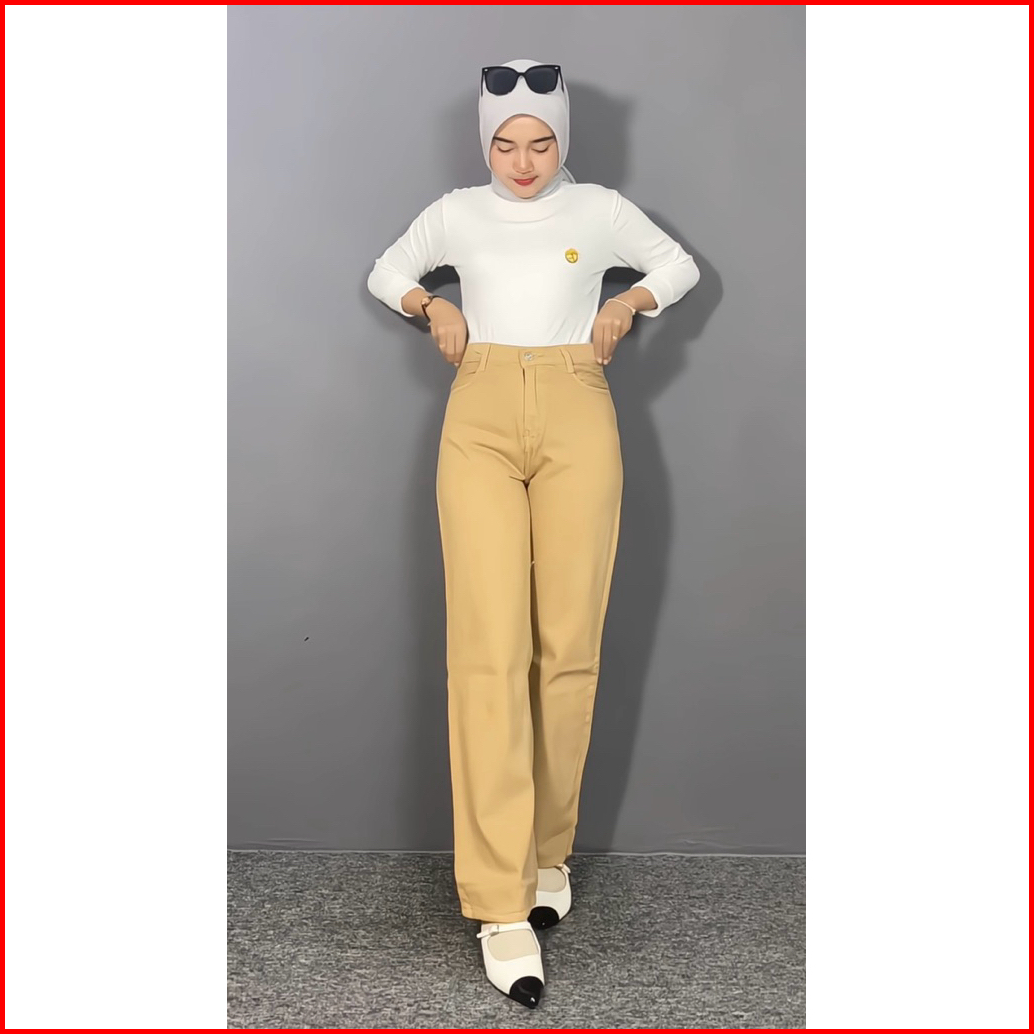 Celana Highwaist Wanita Jeans Kulot Kekinian