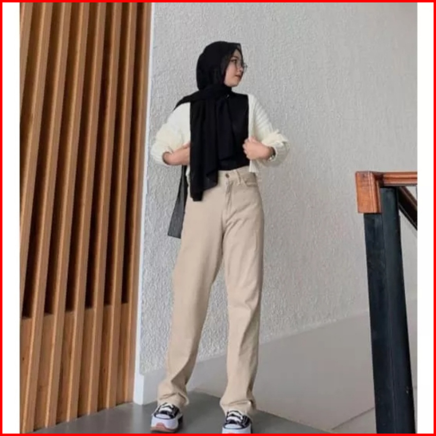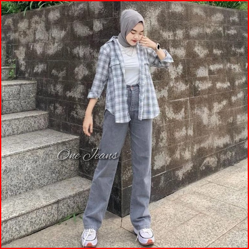 Terbaru Highwaist Loose Grey Abu Celana Korea Style Kulot Jeans Wanita Panjang 100