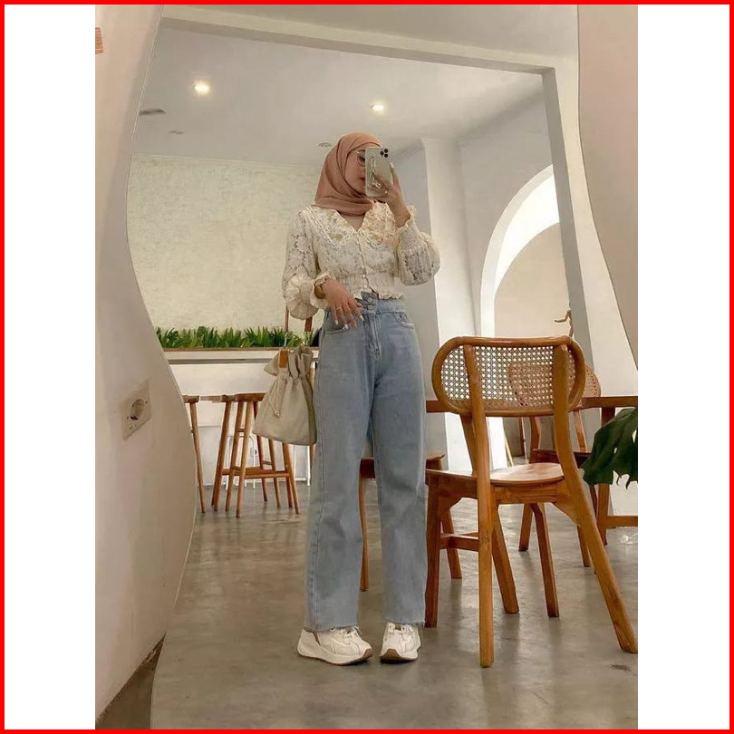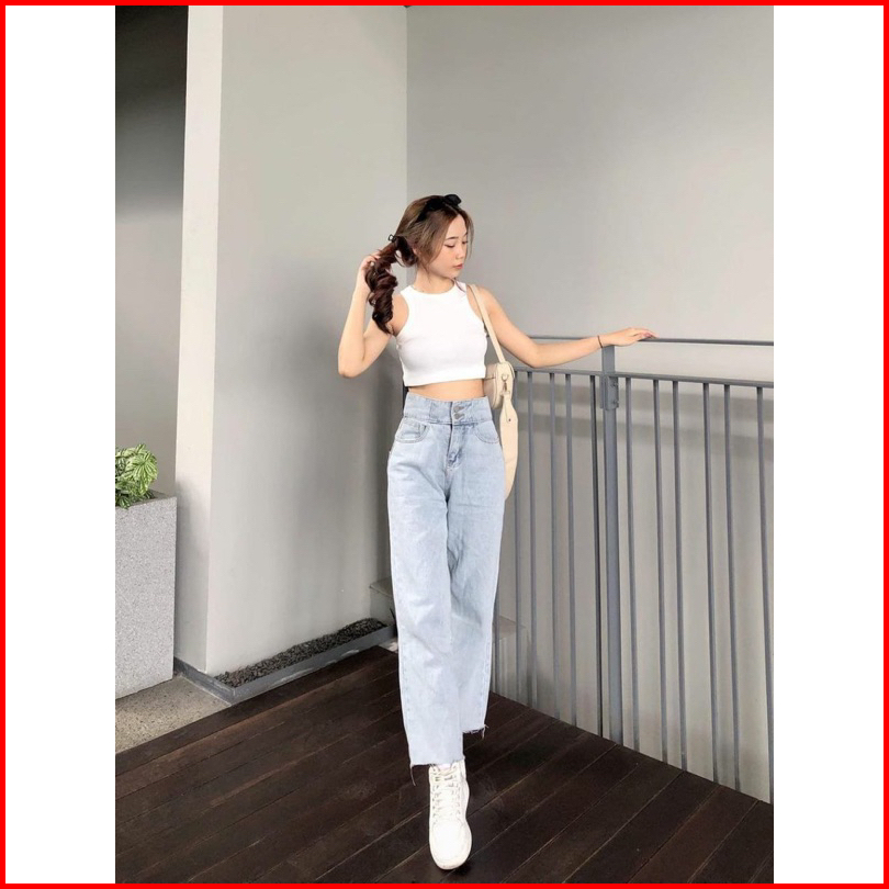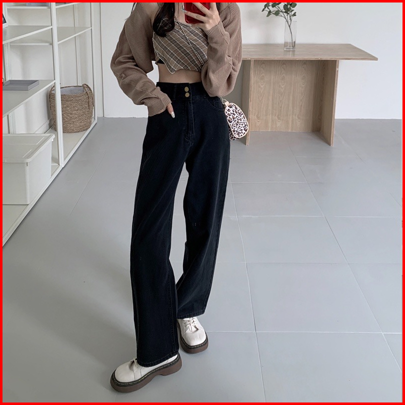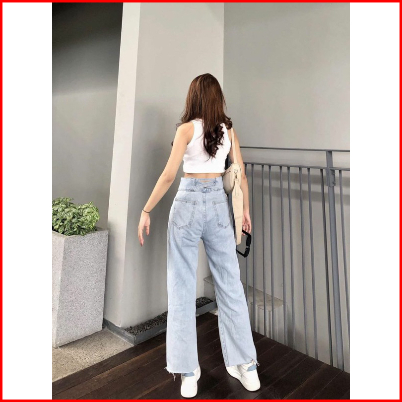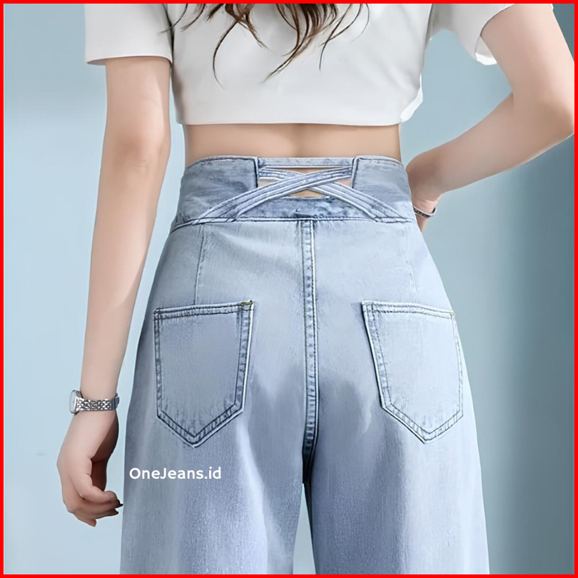 Highwaist Jeans J23 Double Button Silang Belakang Kulot Loose Korea Style Terbaru Panjang 100cm