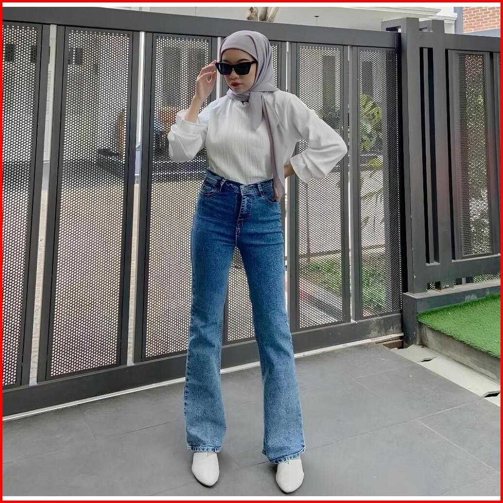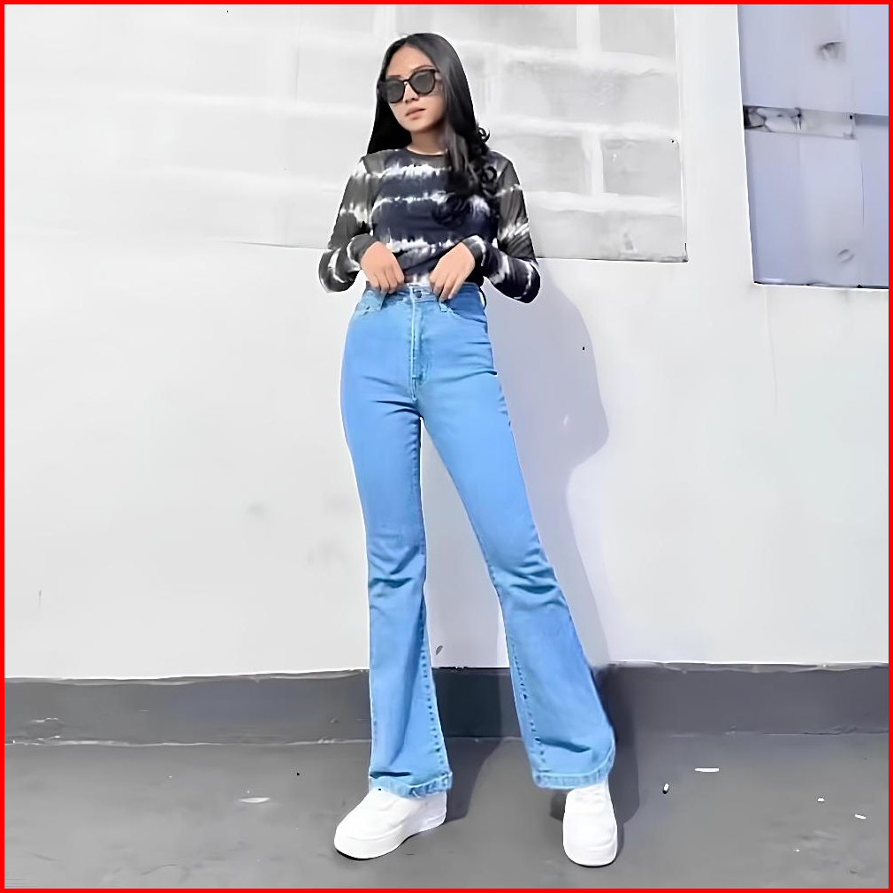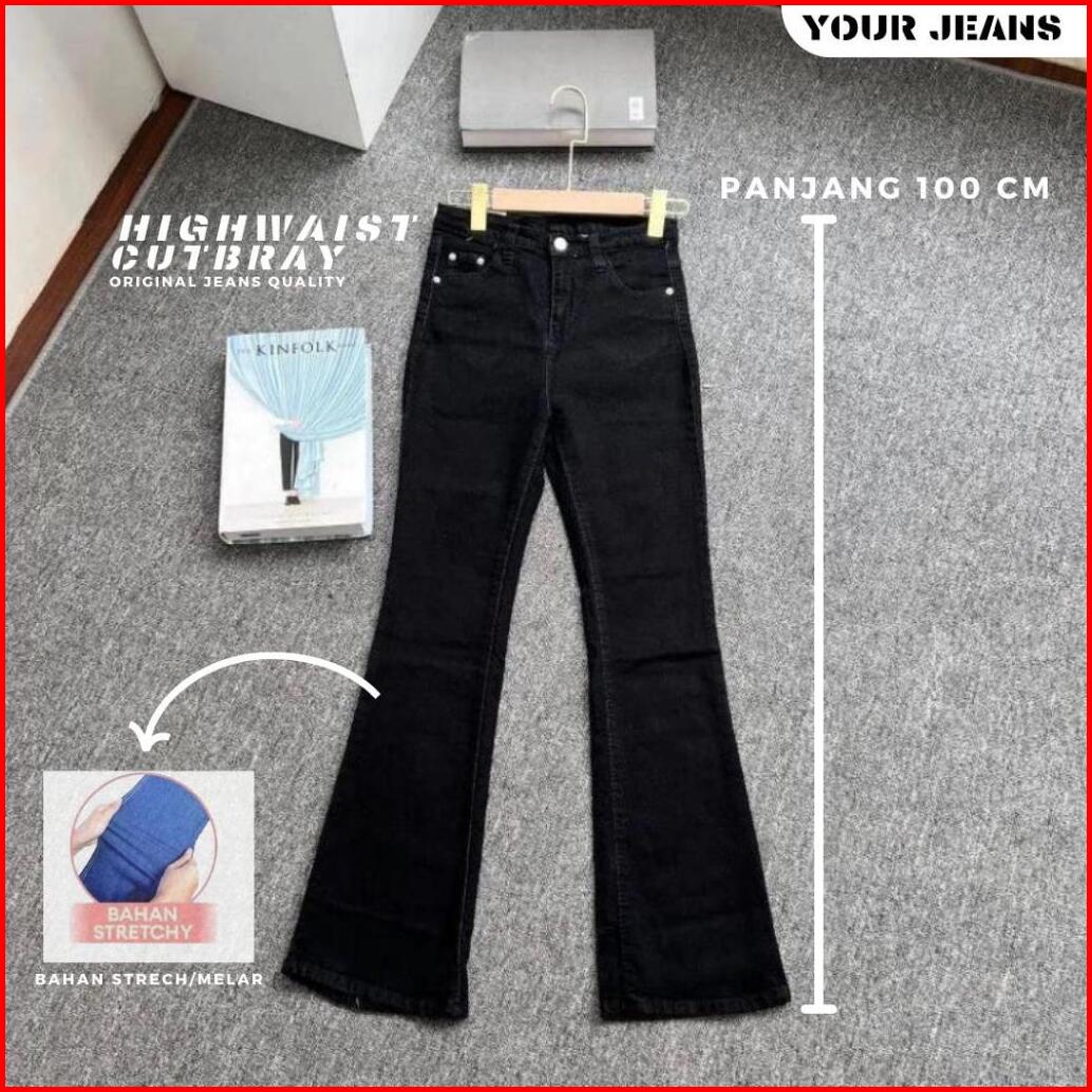 Hw Cutbray Jeans Wanita - Celana Highwaist Cutbray Strecht Kekinian - Cutbray Flared - Streetch Premium Quality