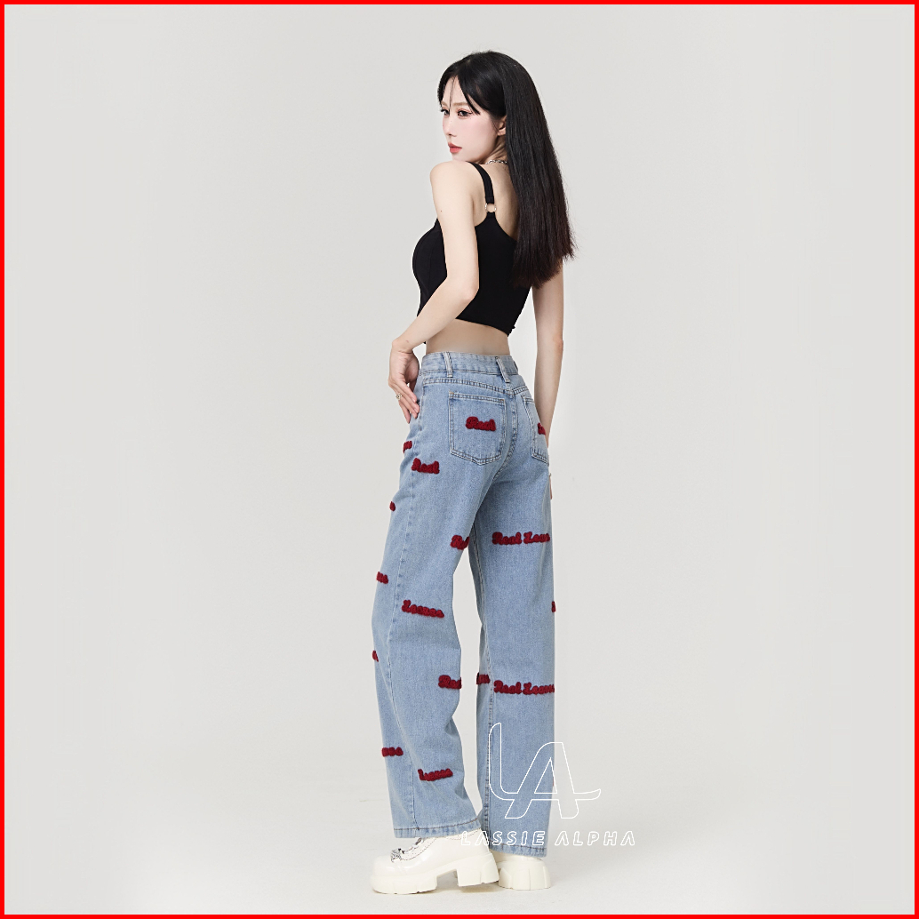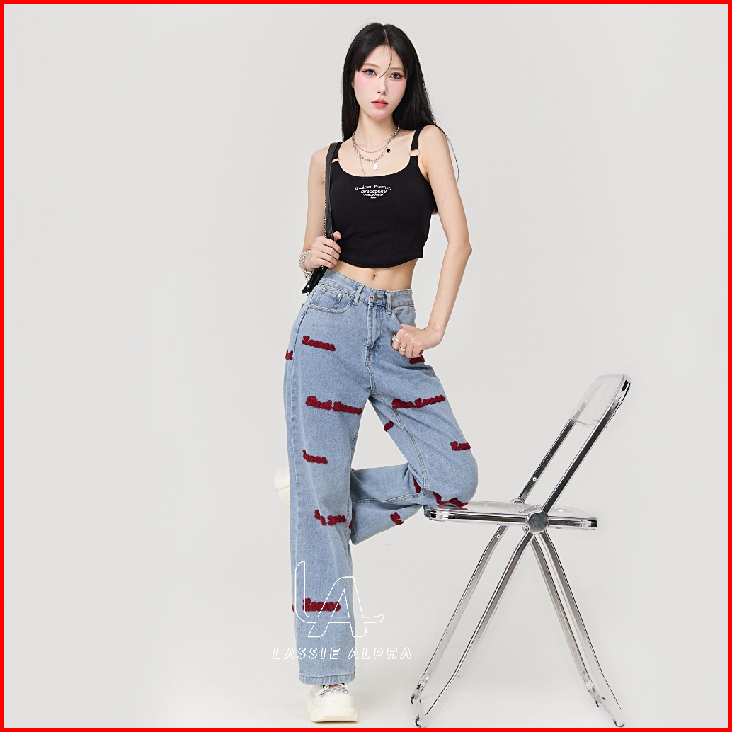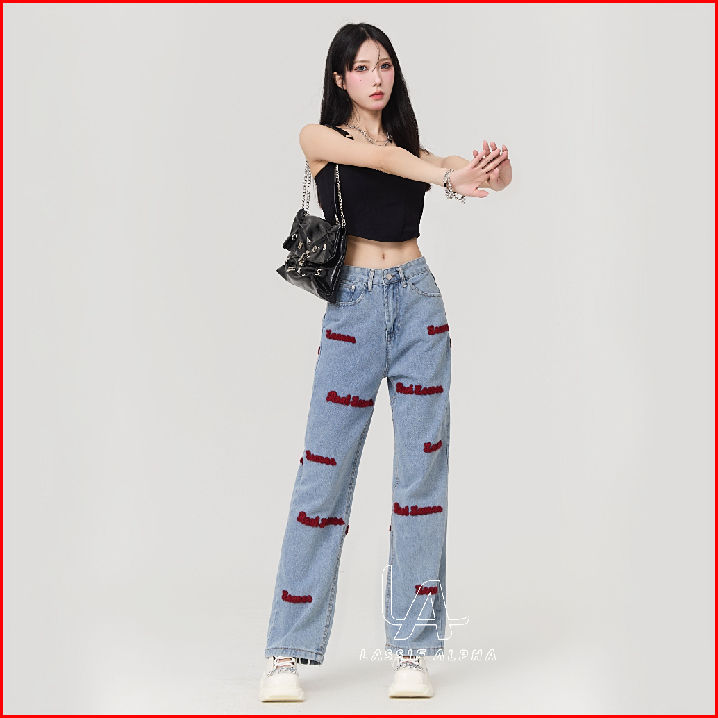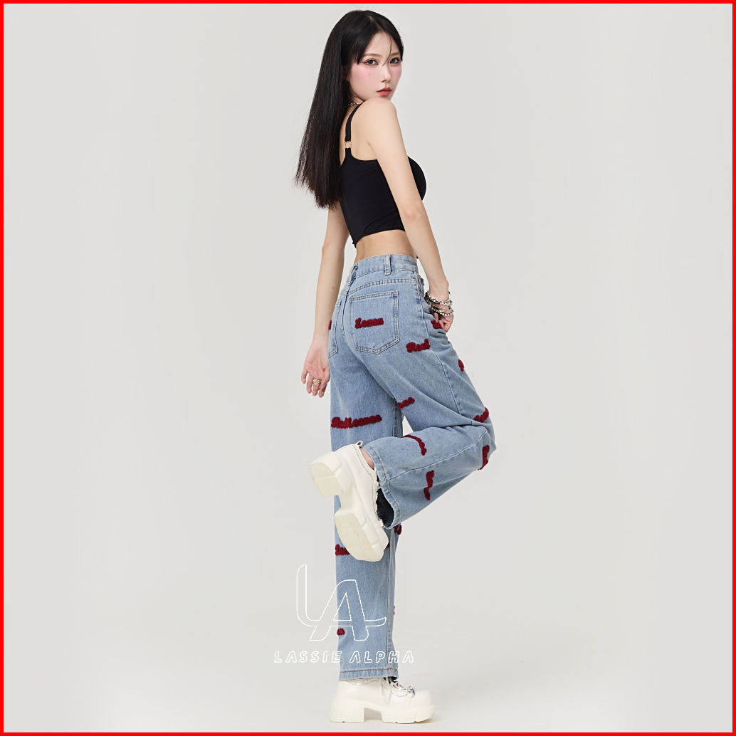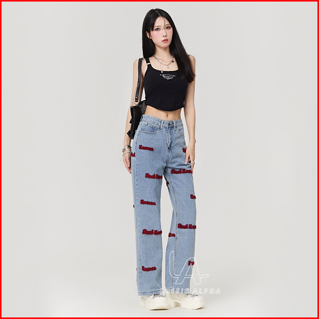 Lassie Alpha J50 Jeans Bersulam Merah Muda Celana Panjang Hw Kulot Jeans Boyfriend Jeans Celana Jeans Highwaist Celana J