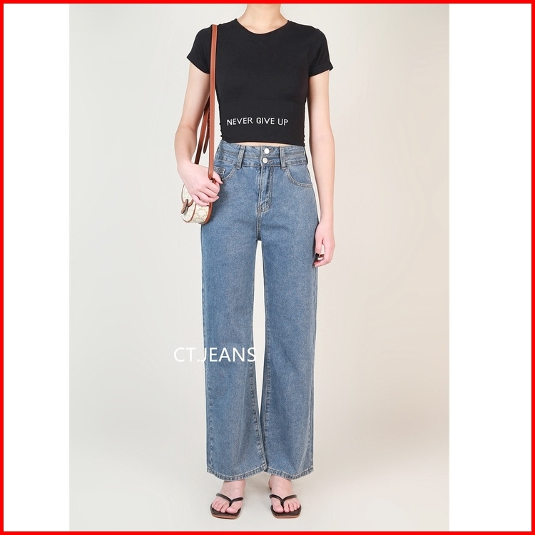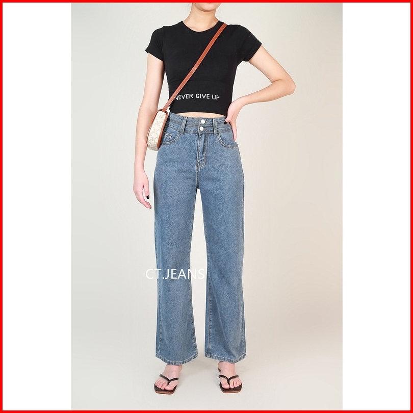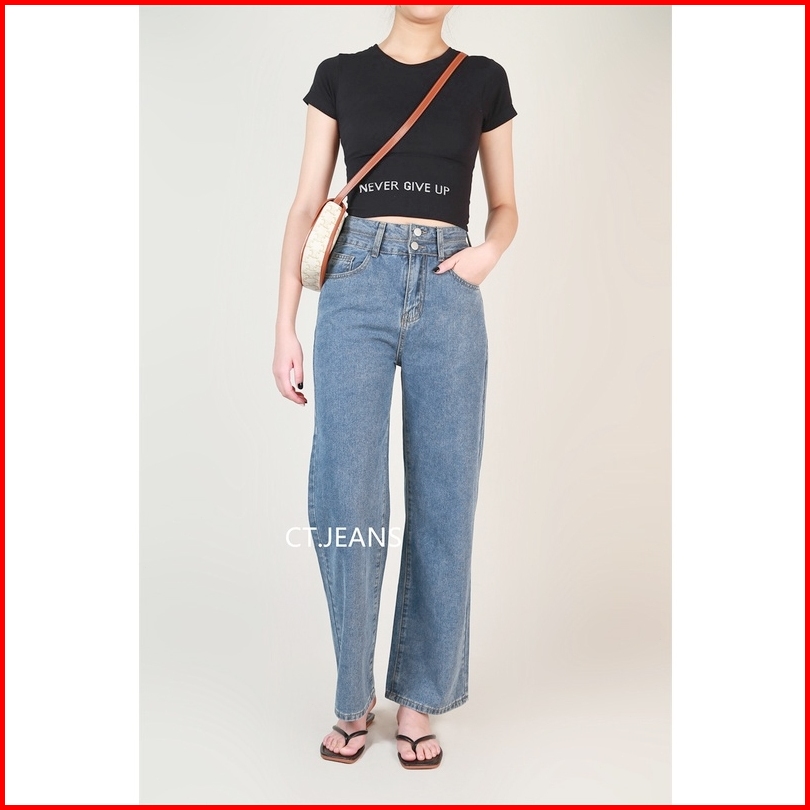 Ct Jeans Kulot Jeans Highwaist Loose Jeans Celana Jeans Wanita Celana Panjang Warna Medium Blue