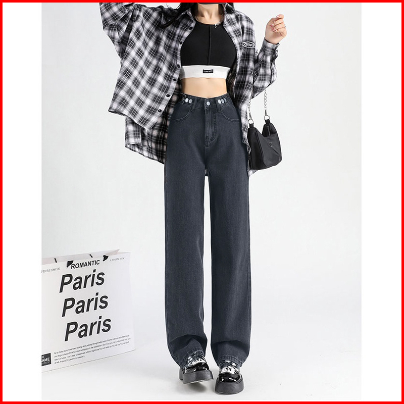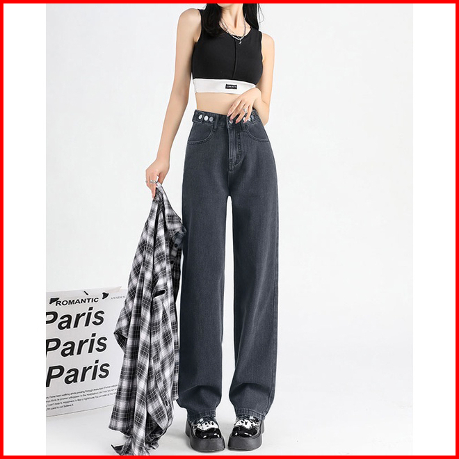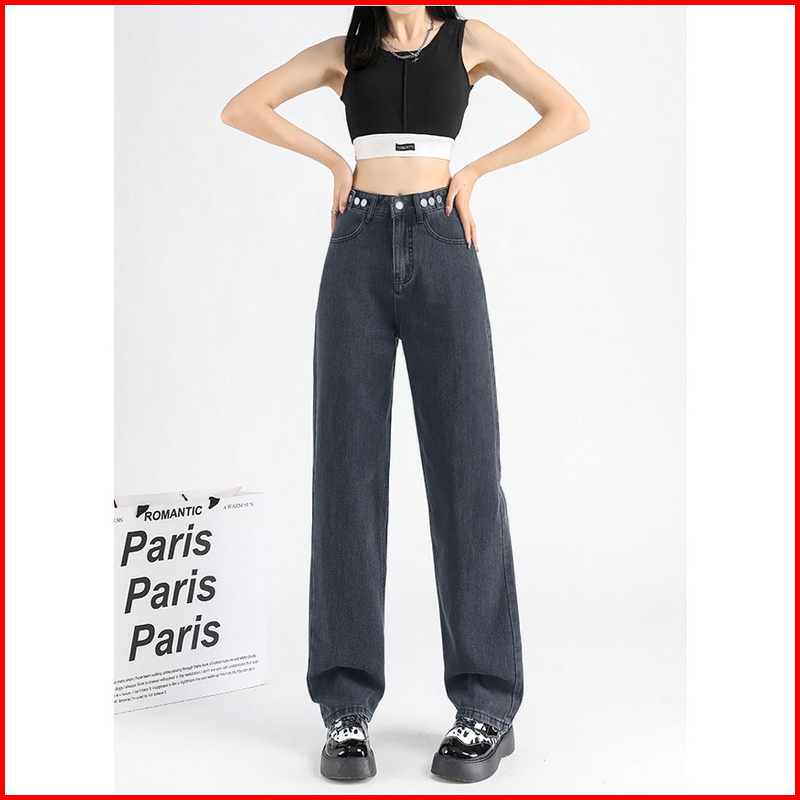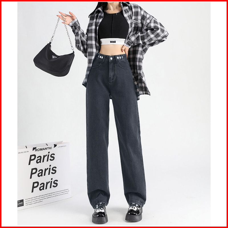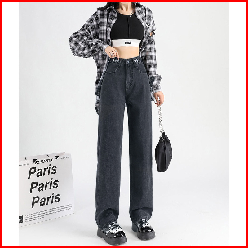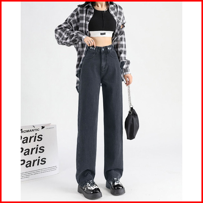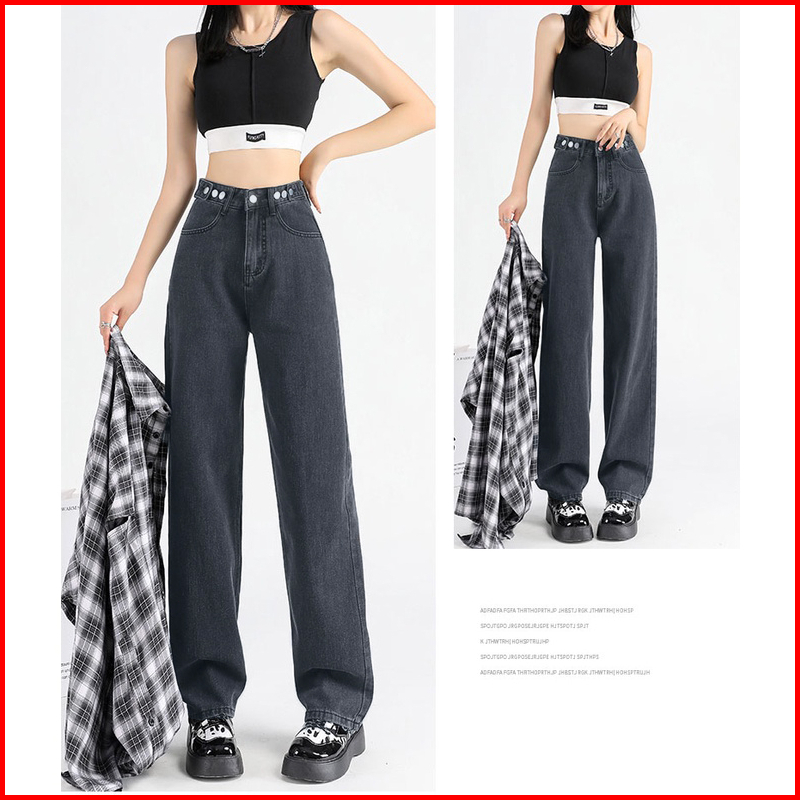 Ct Jeans New Korean Style High Waist Kulot Celana Jeans Panjang Wanita Warna Dark Blue