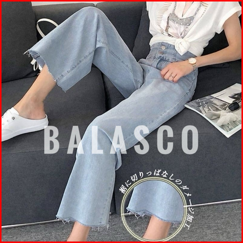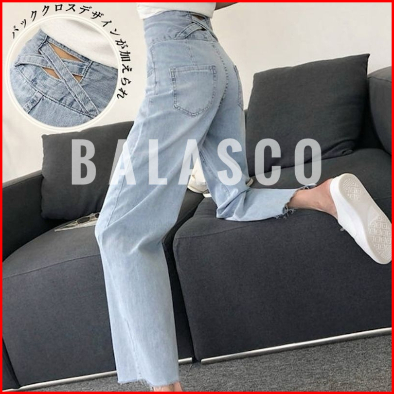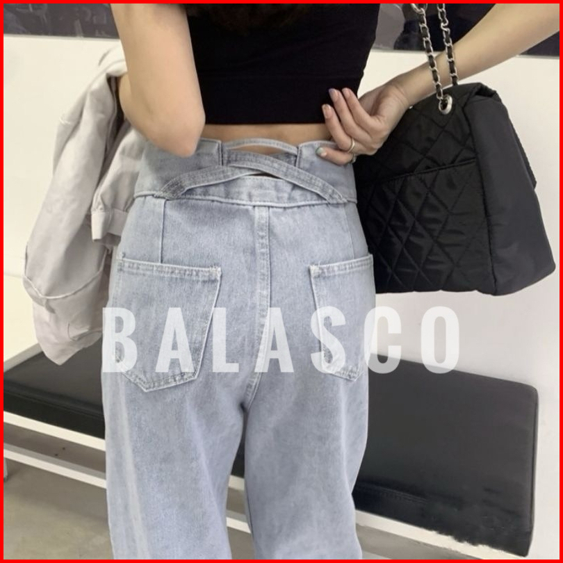 Balasco Celana Jeans Highwaist Kancing 2 Model Silang Belakang Highwaist