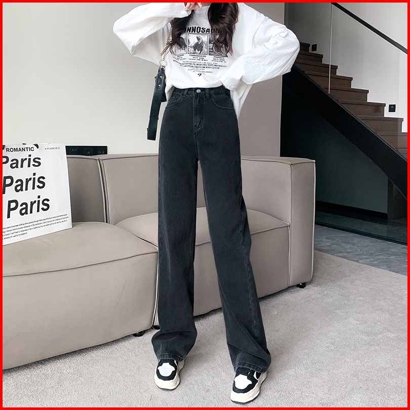Xiaozhainv Korean Style Jeans Celana Jens Wanita Celana Jean High Waist Straight Loose Celana Wanita Highwaist Jeans Wan