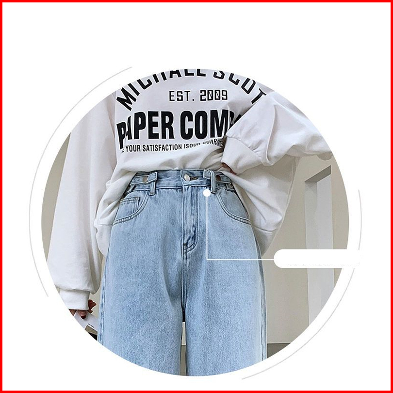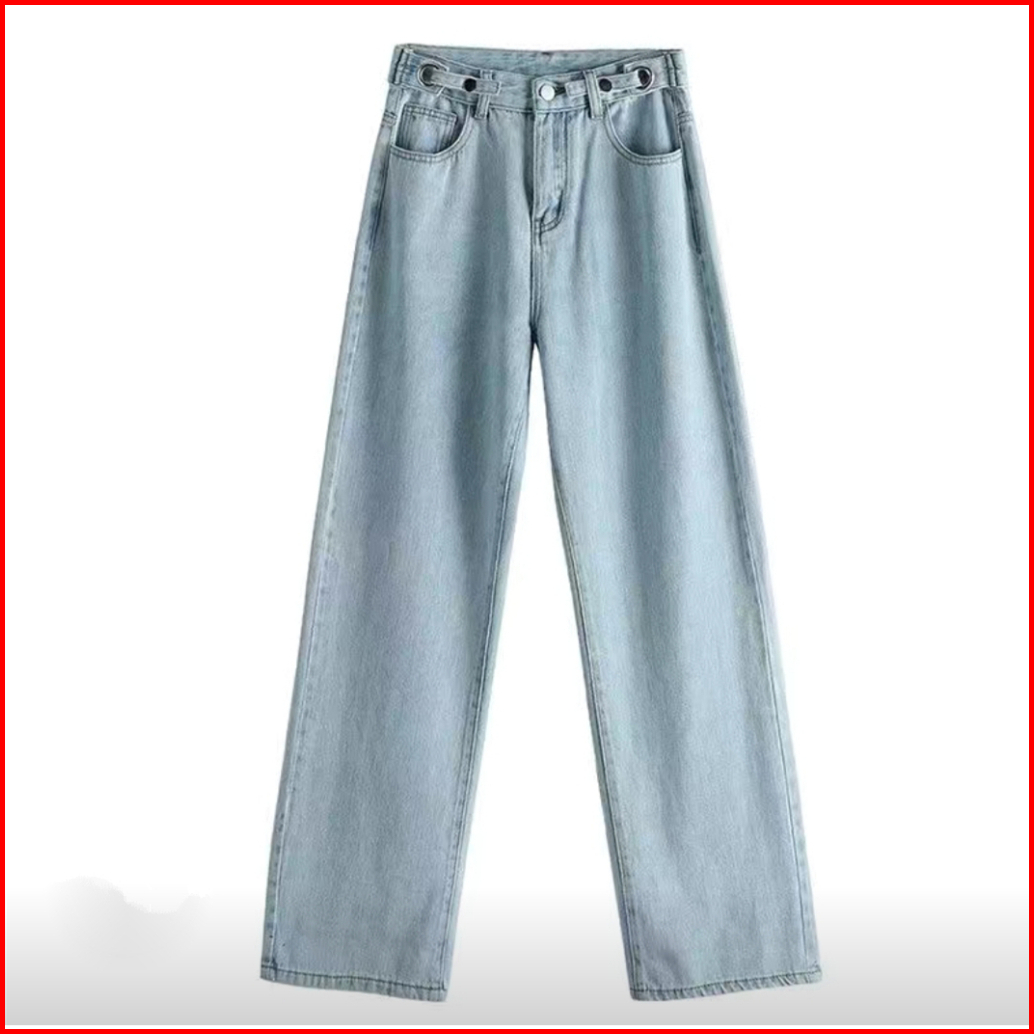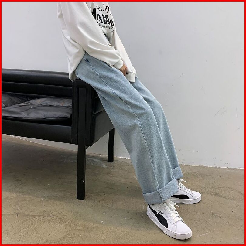 Xiaozhainv Korean Style Jeans Wanita Light Blue Loose Rolled Edge Wide Legs