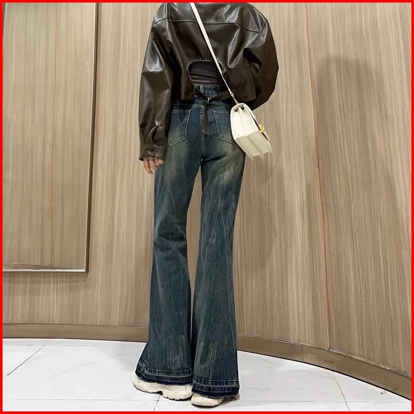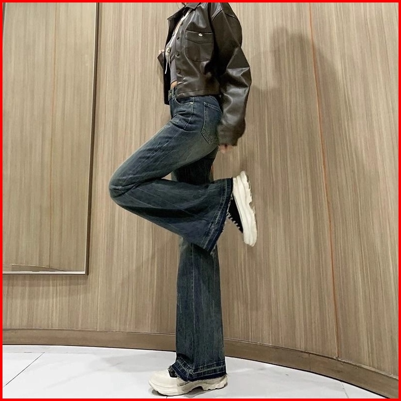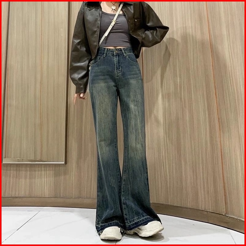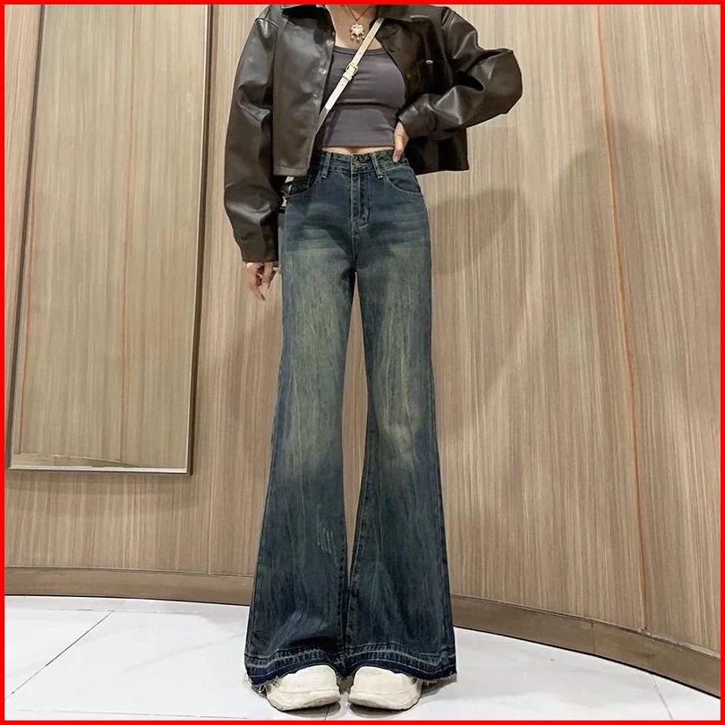Xiaozhainv Korean Style Jeans Celana Jeans Wanita Flare Stretch Celana Cutbray Jeans Wanita Causual Berkobar Skinny Cela