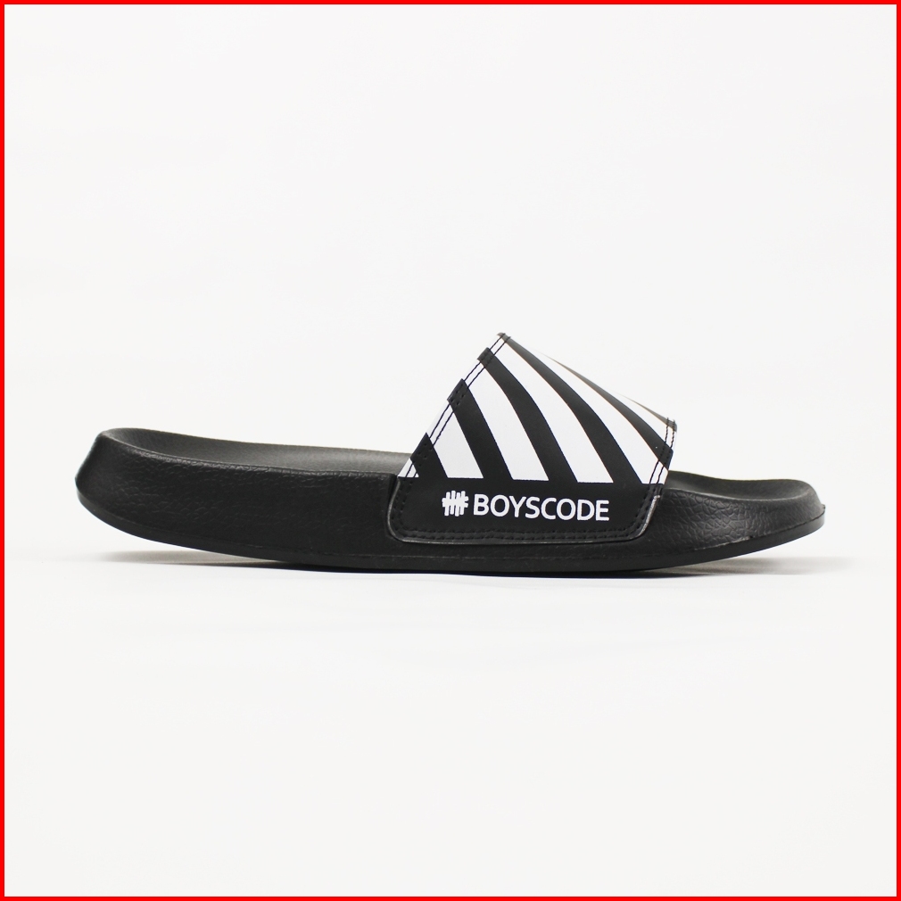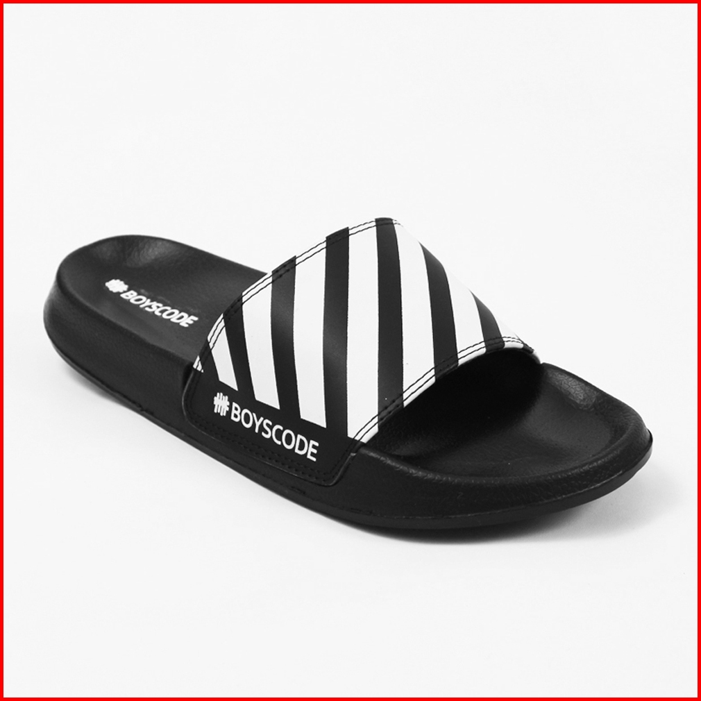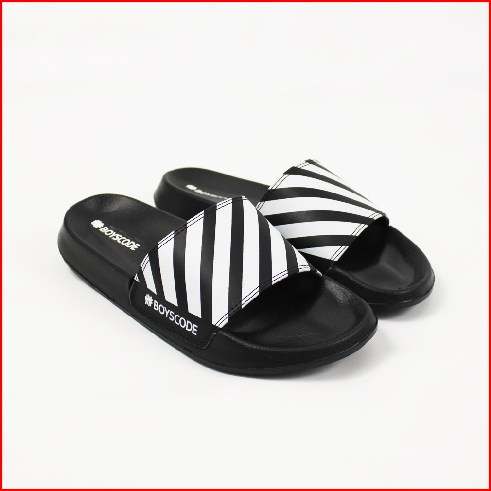 Boyscode Sendal Selop Karet Distro Pria Wanita Motif Zebra Hitam Putih Slip On Pria Slop Pria Slide Pria