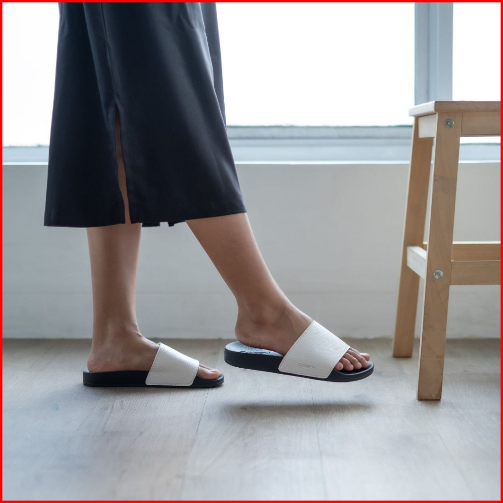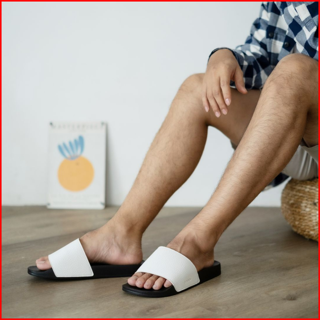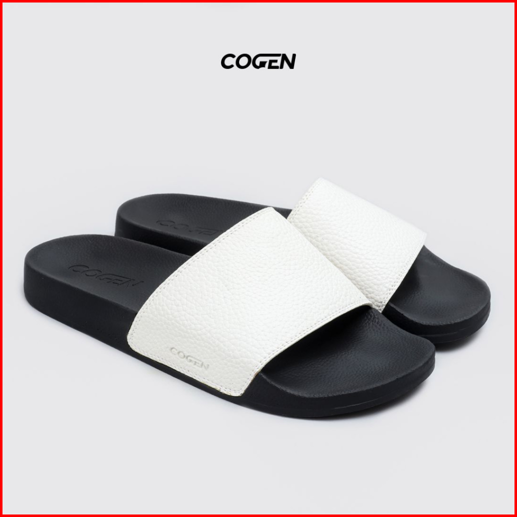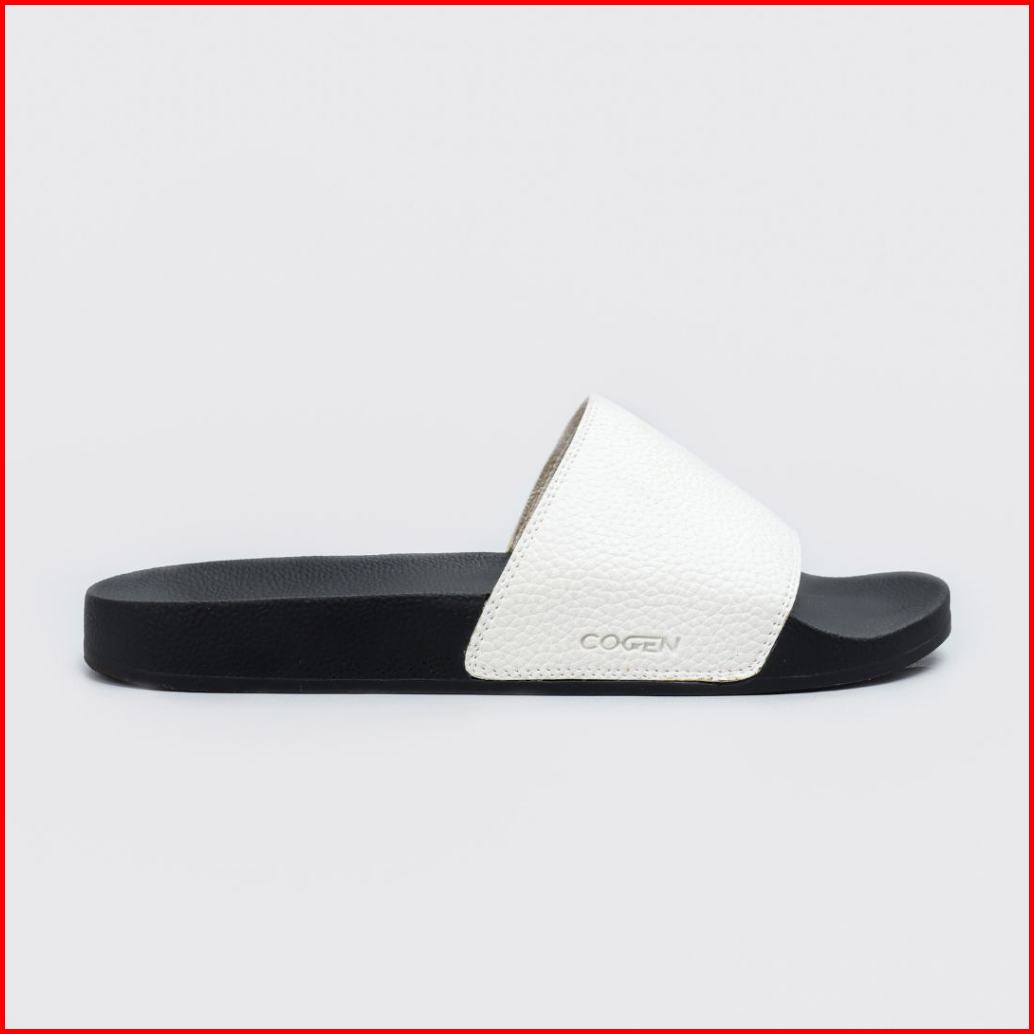 Cogen Sandal Slip On Sendal Kulit Pria White Putih Basic