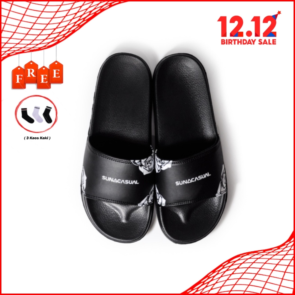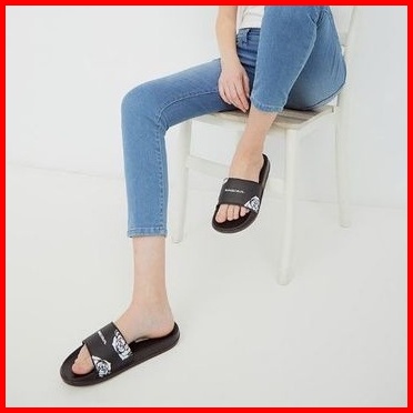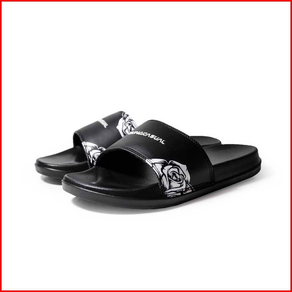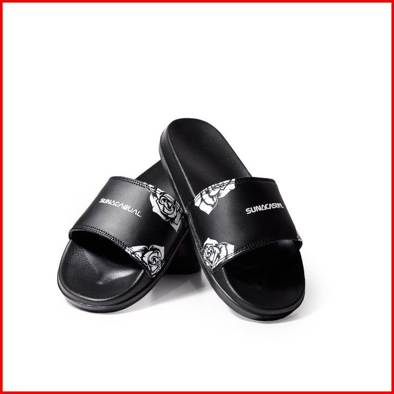 Sun Casual - Rose Black White Slippers Slide Sandal Wanita