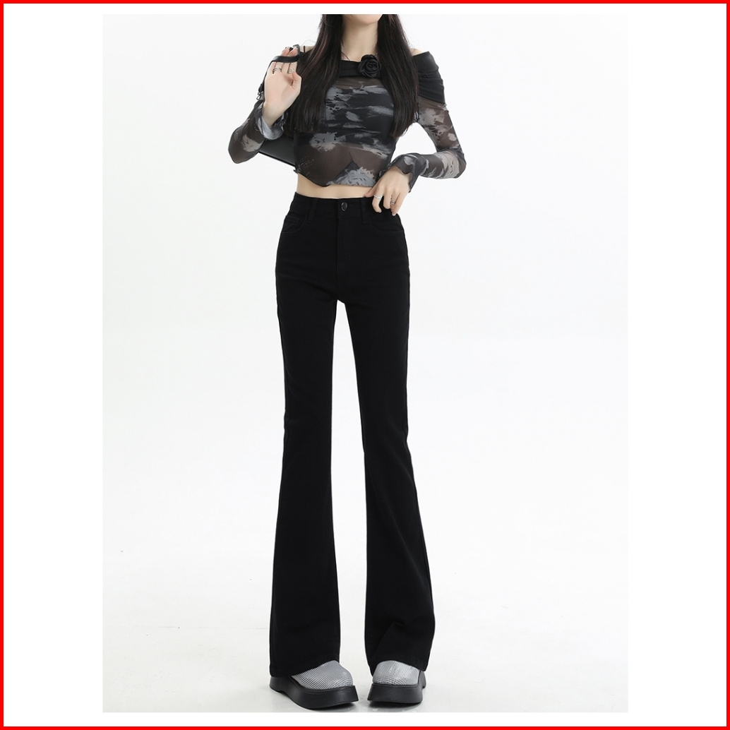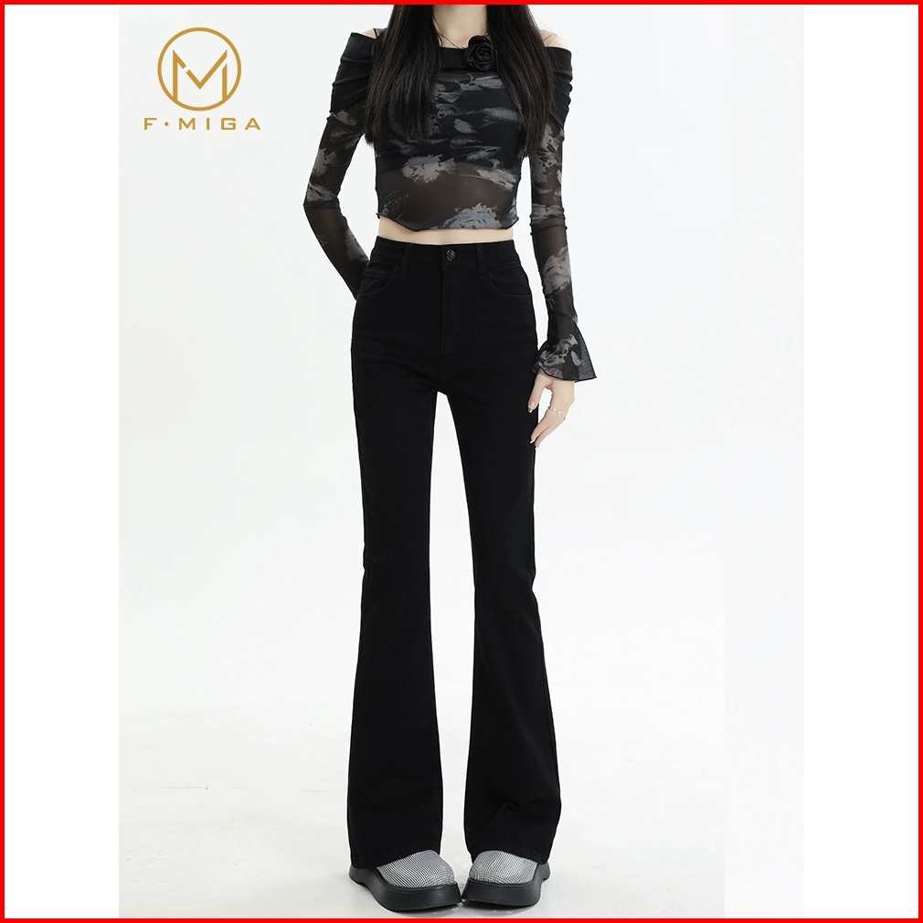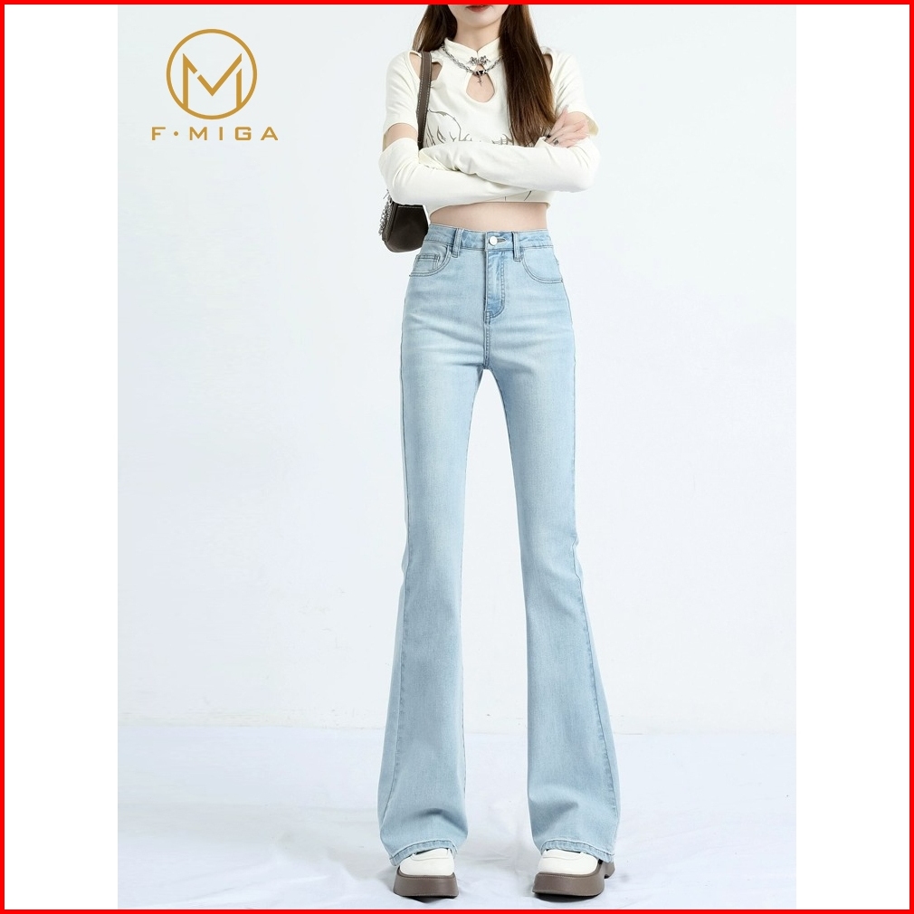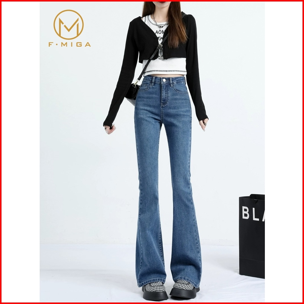 F Miga C61 Biru Retro Highwaist Stretch Cutbray Flare Celana Jeans Panjang Wanita