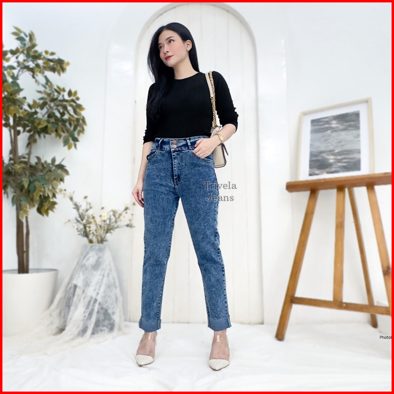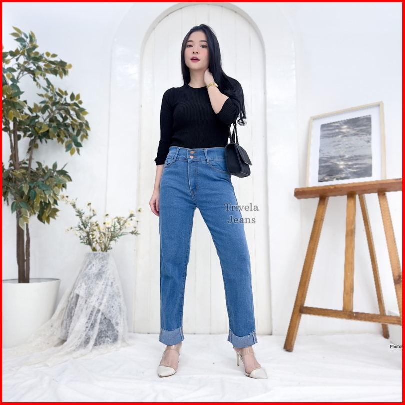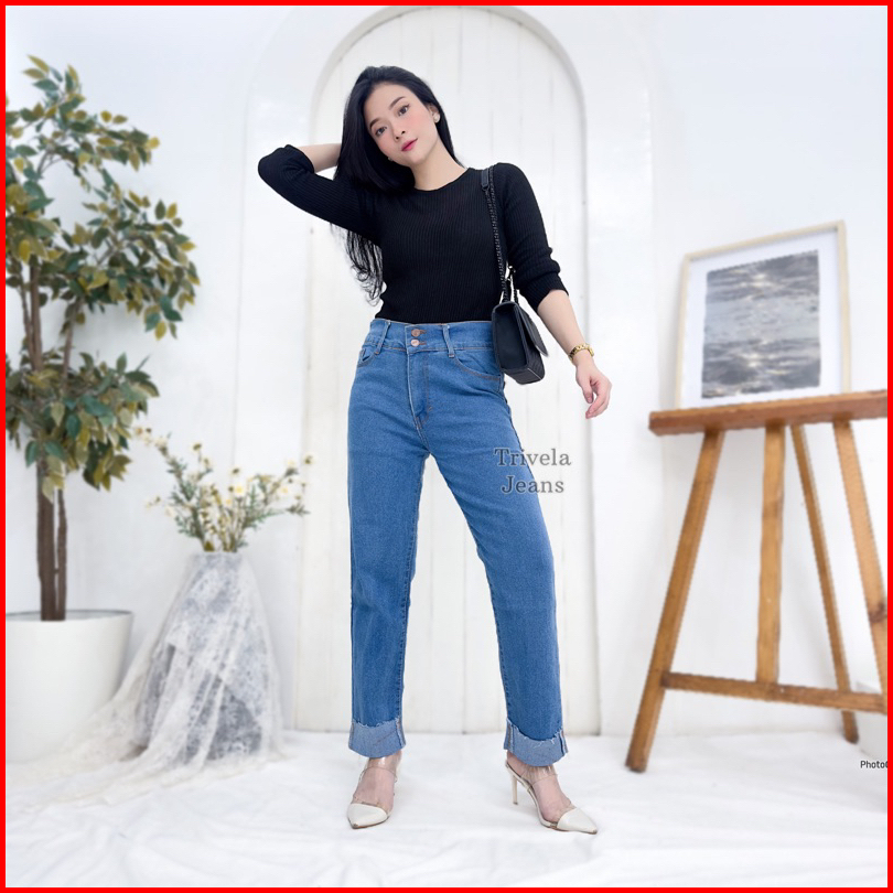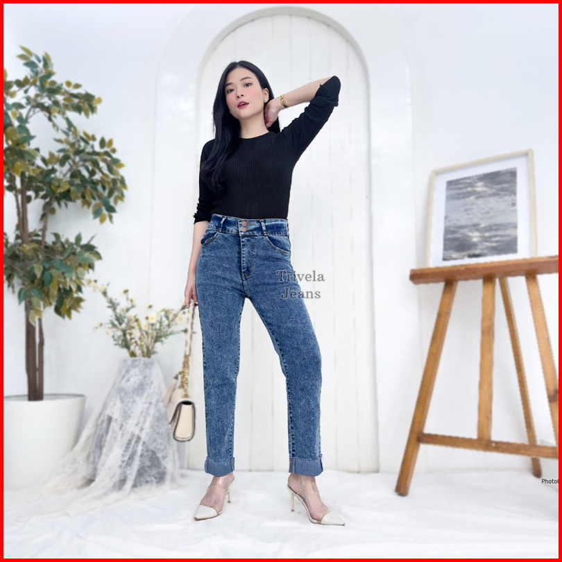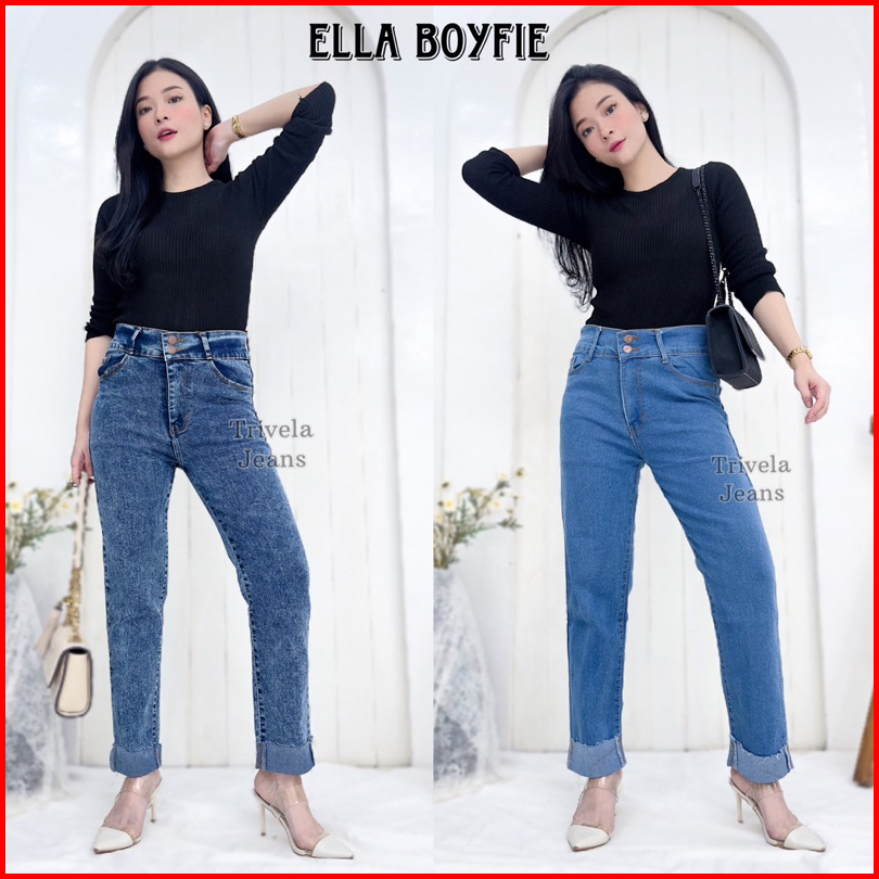 Ella Boyfie - Celana Boyfriend Stik Balik Melar - Boyfriend Jeans Roll Up Stretch