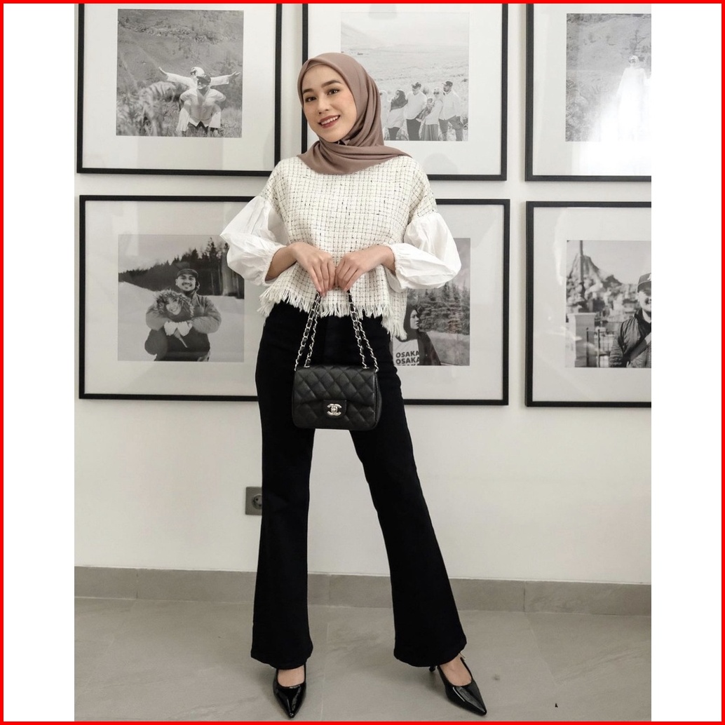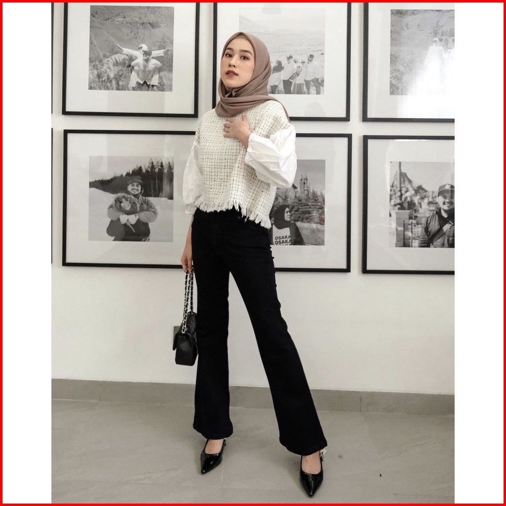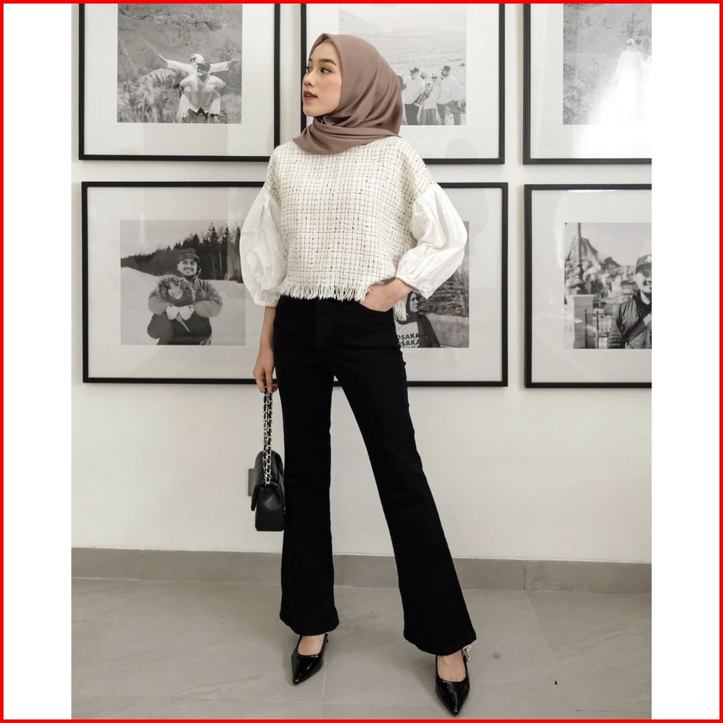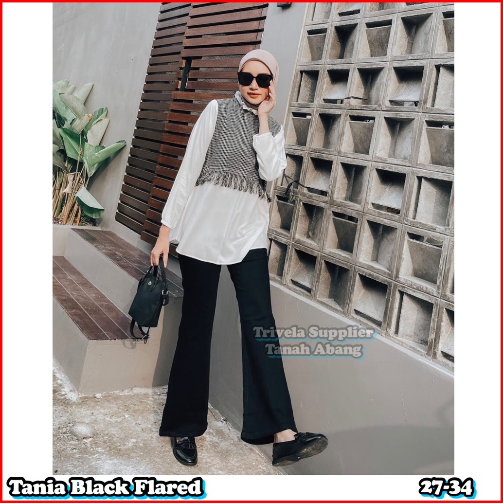 Tania Black Flared Celana Jeans Cutbray Wanita