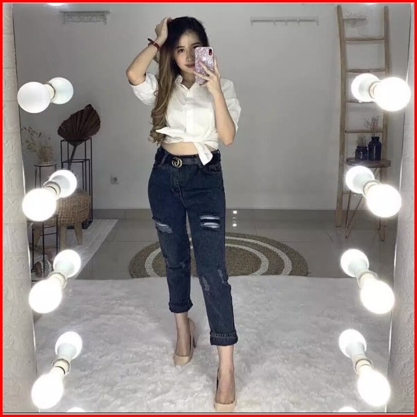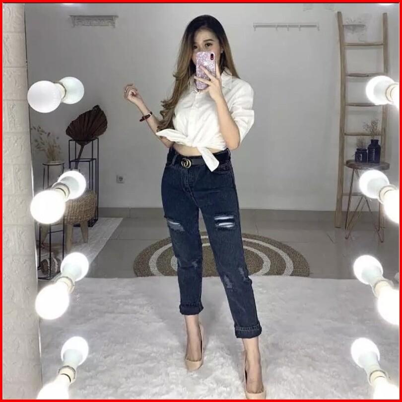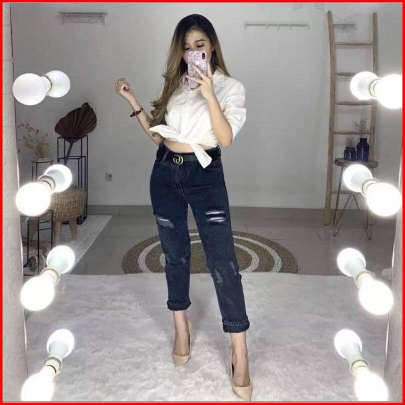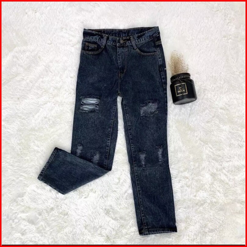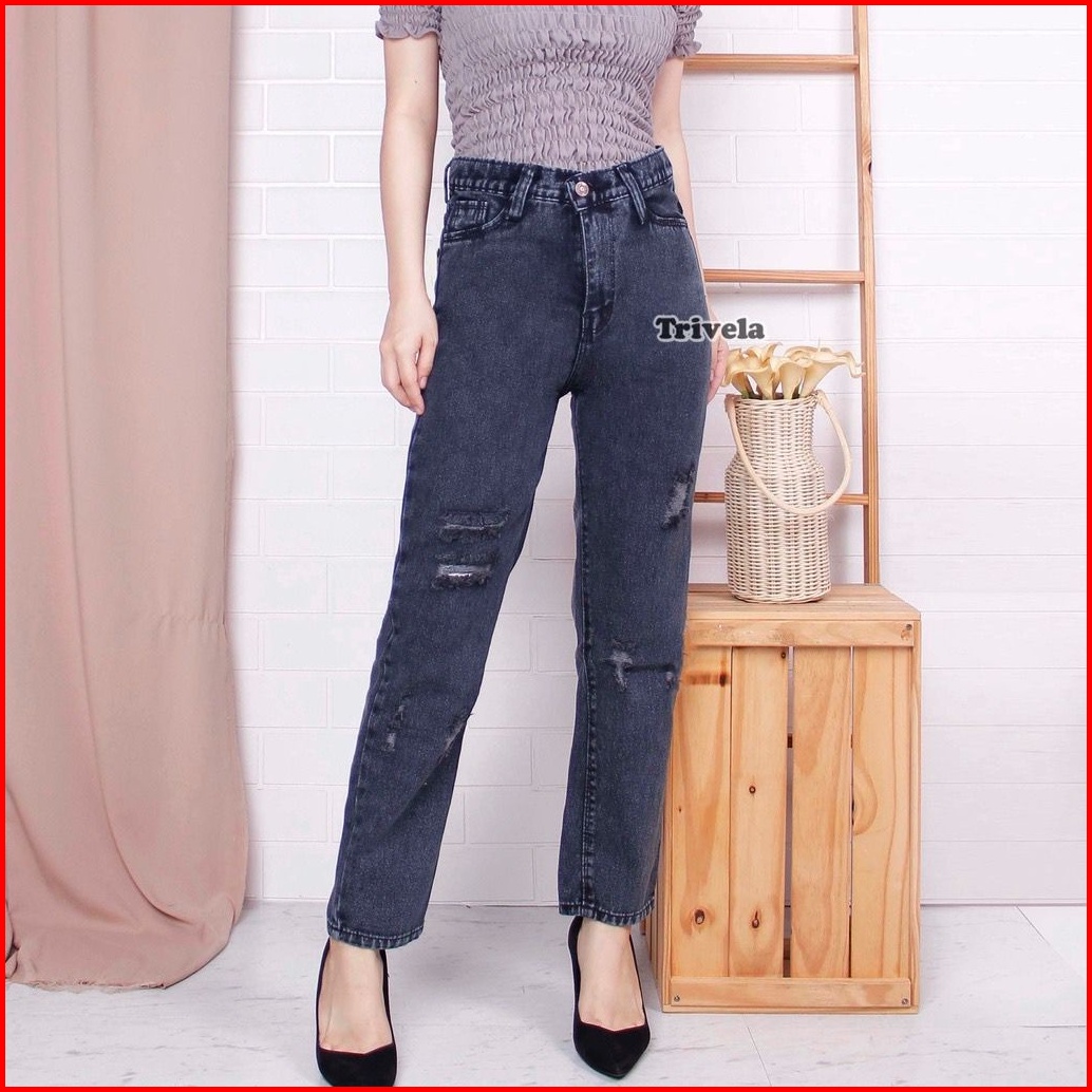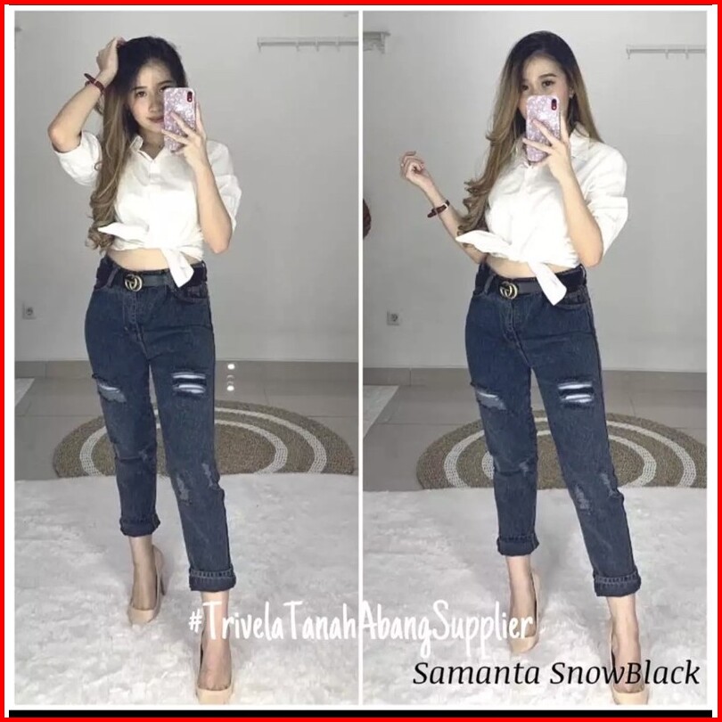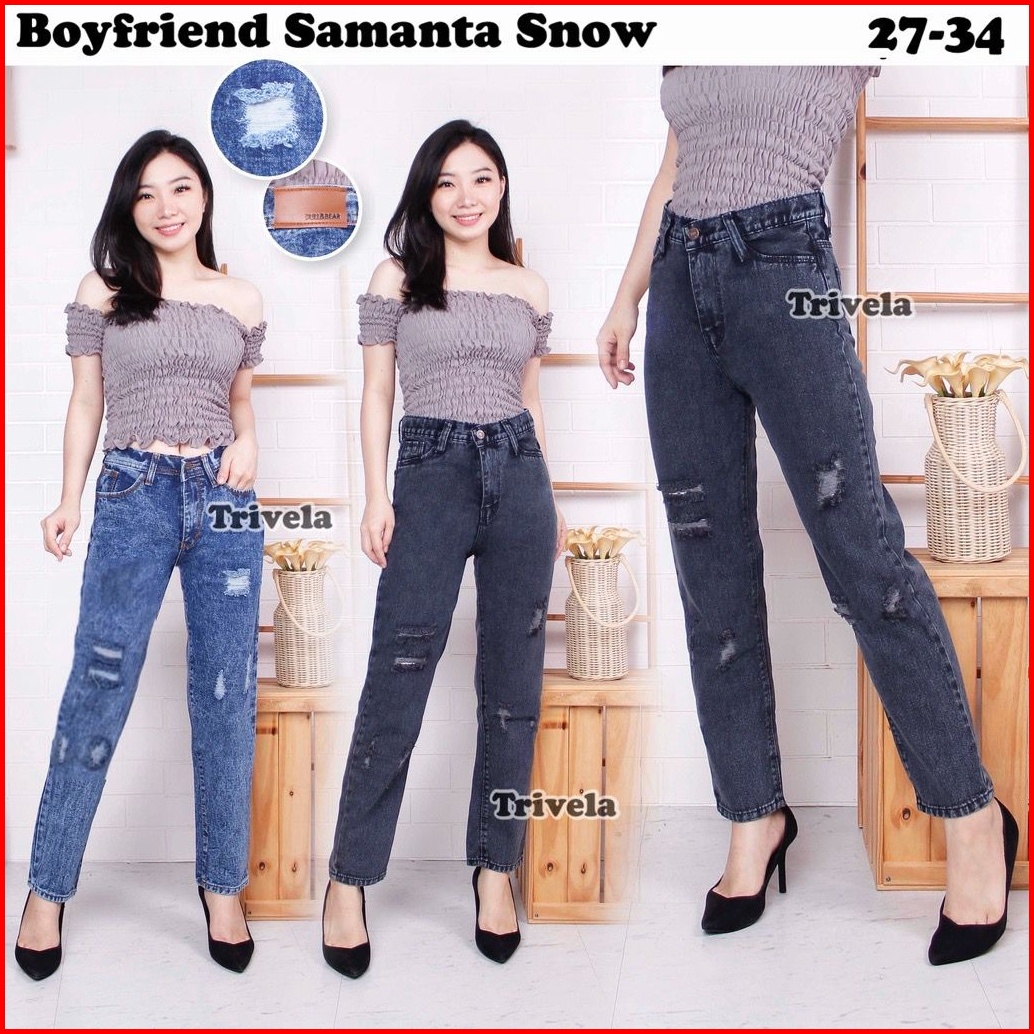 Celana Jeans Boyfriend Samanta Snow Black Boyfriend Sobek Lapis