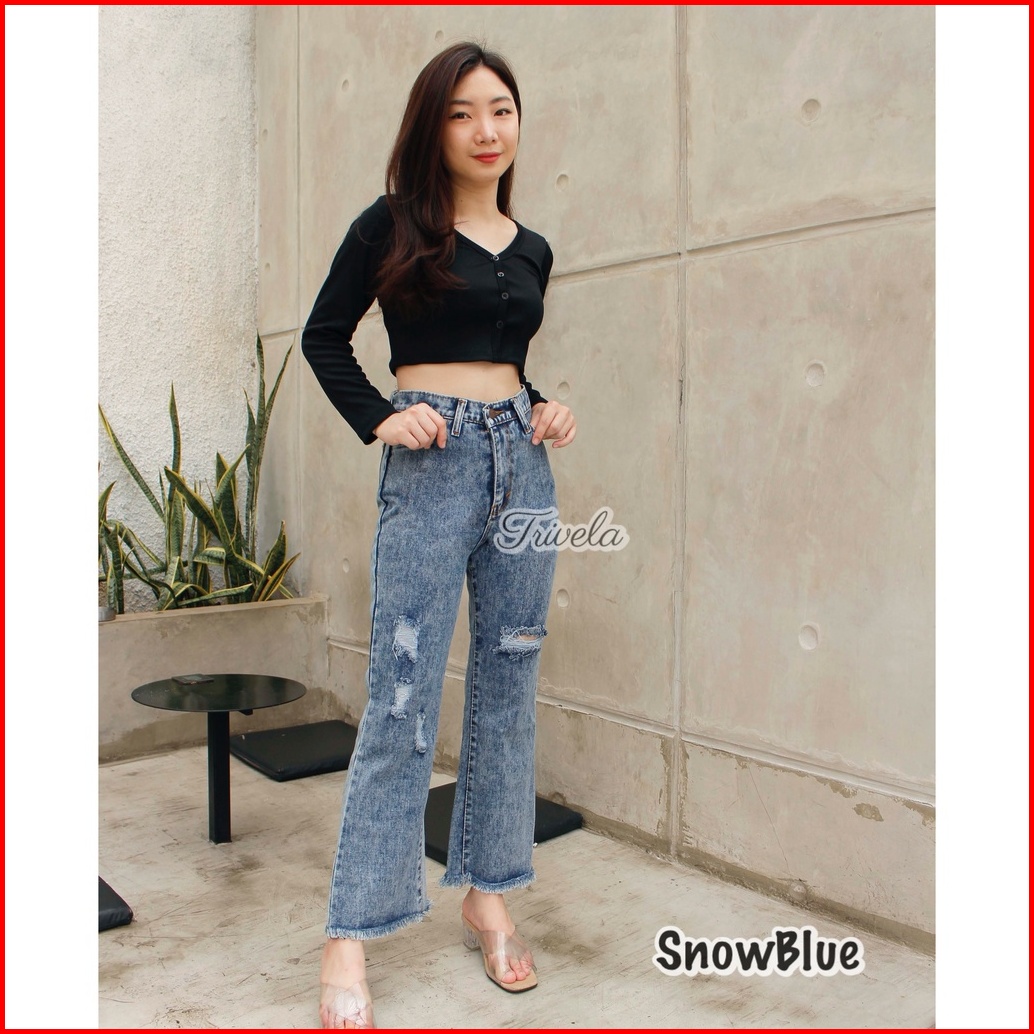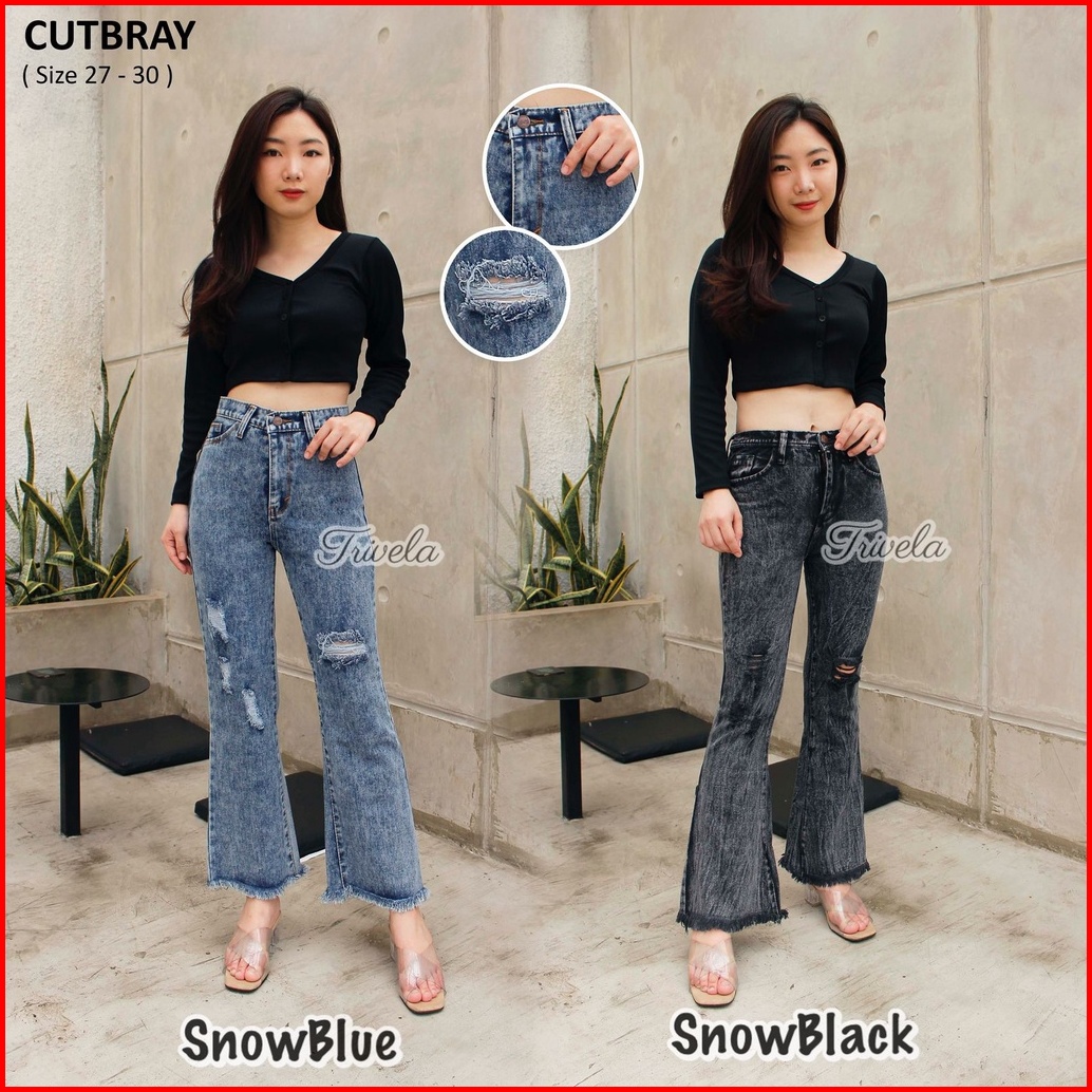 Boyfriend Cutbray Tulang Sobek Cutbray Ripped Boyfriend Jeans Wanita Catlyn 27-34