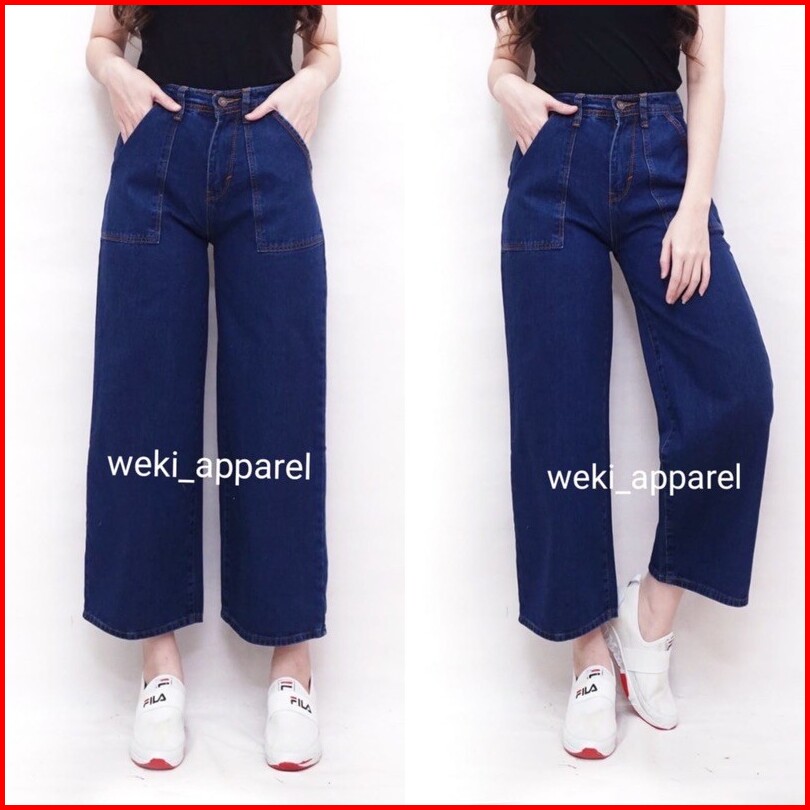 Kulot Jeans Alice - Kulot Jeans Kantong Tempel Dark Blue