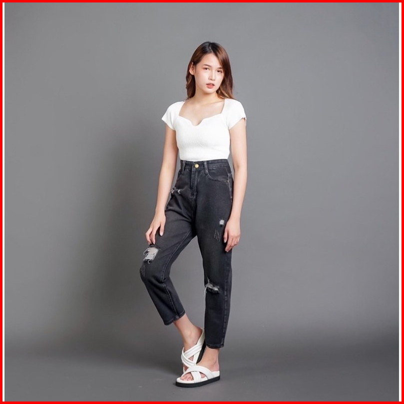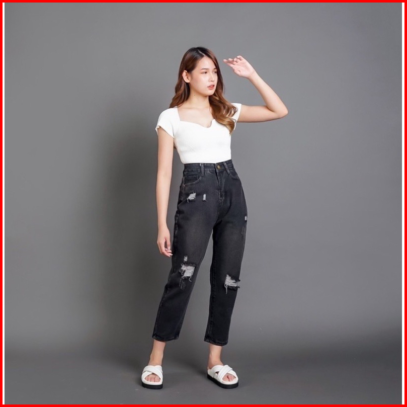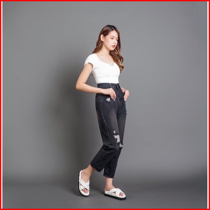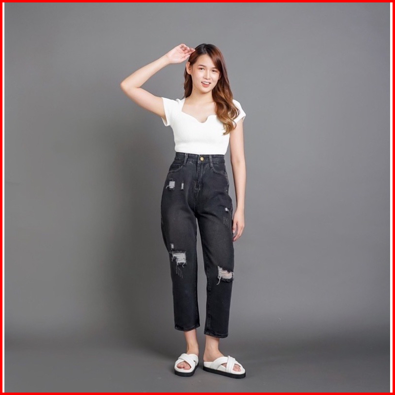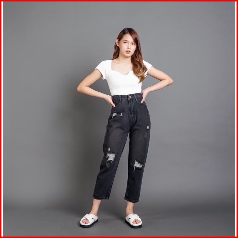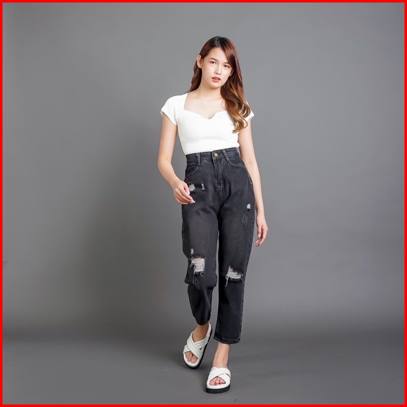 Thegirlhouse - Sofia Highwaist Boyfriend Black-acid Destroy