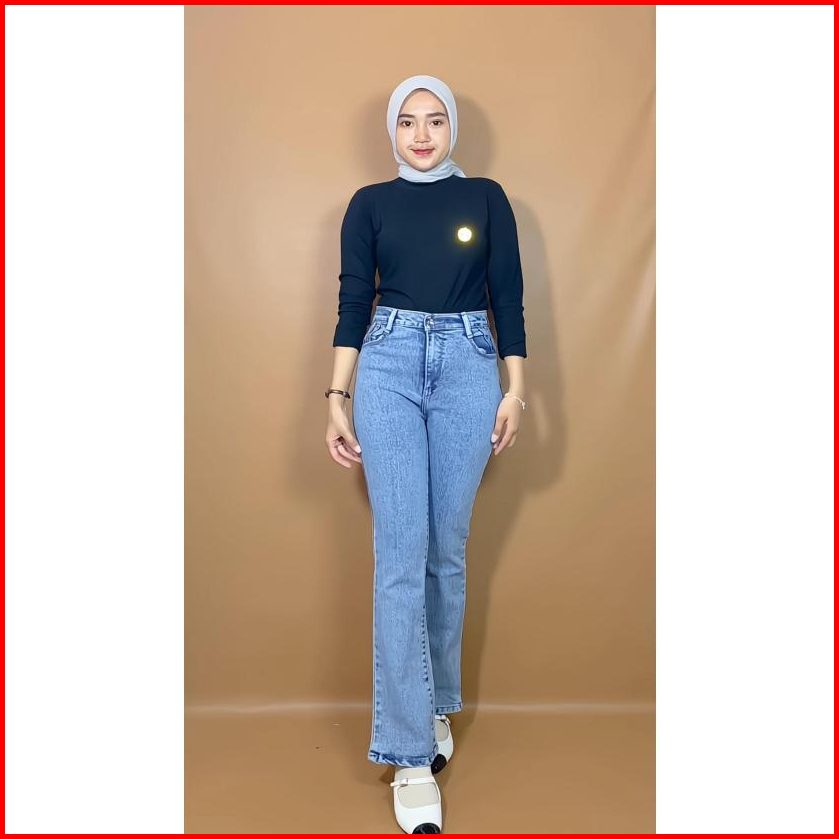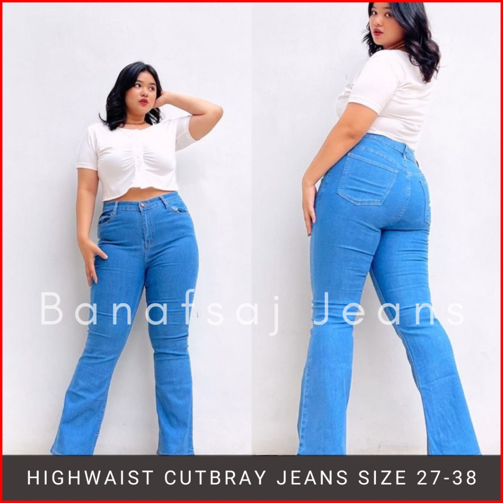 Celana Highwaist Cutbray Jeans Jumbo Melar Stret