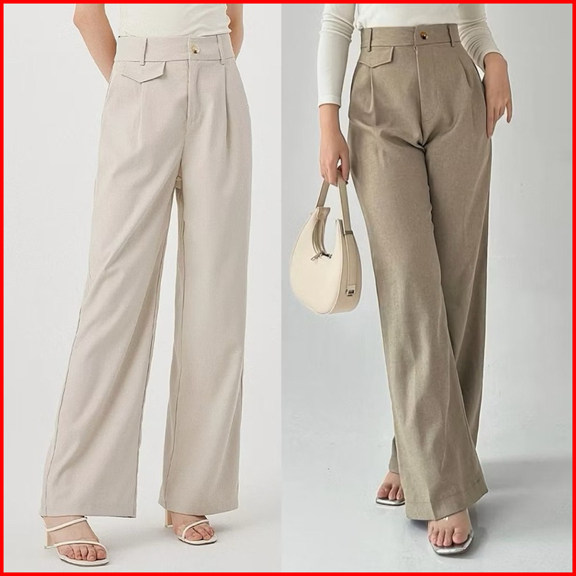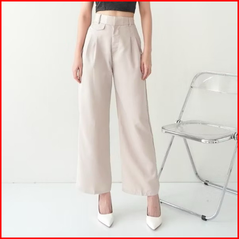 Balasco-oro Pants Celana Kulot Highwaist Loose Pants Trousers - Celana Kulot Wanita Anti Kusut Knit Premium