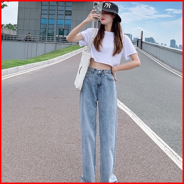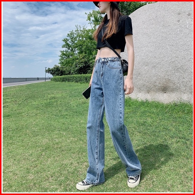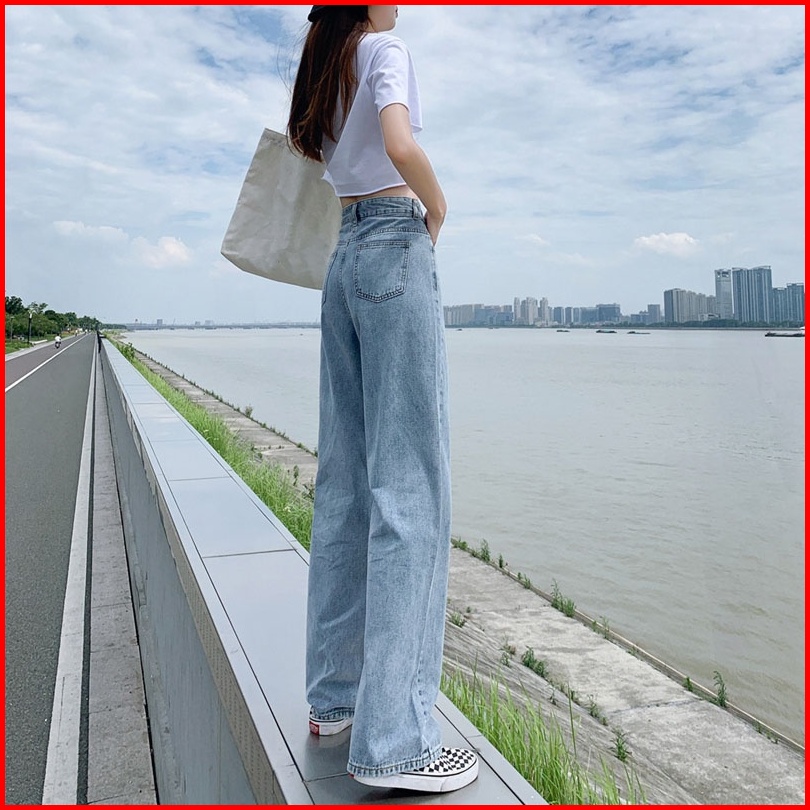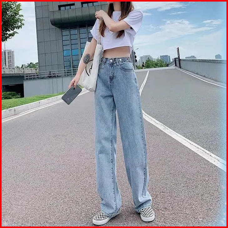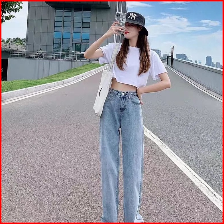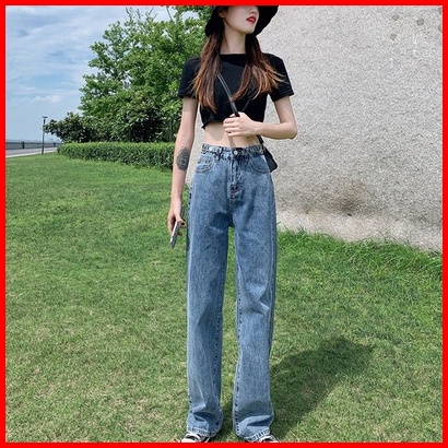 Xiaozhainv Korean Style Jeans Wanita Retro Loose Highwaist Straight Jeans