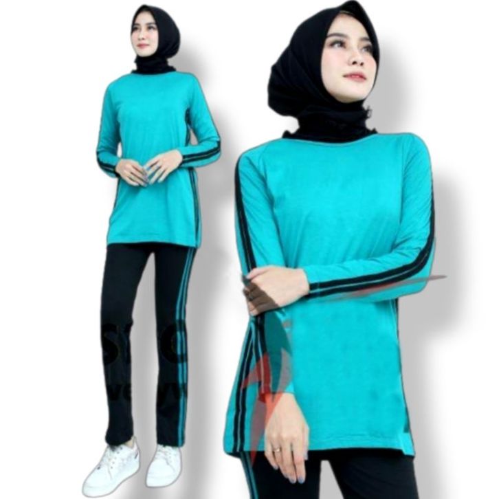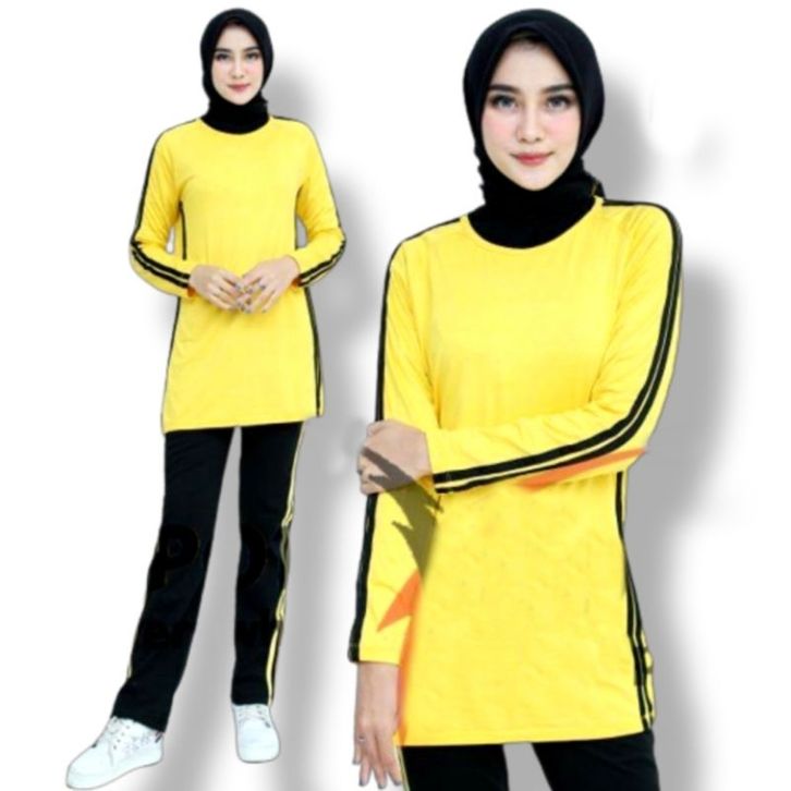 Setelan Baju Senam Wanita One Set Pakaian Olahraga Perempuan Celana Training Kaos Lengan Panjang Size L XL XXL Trend