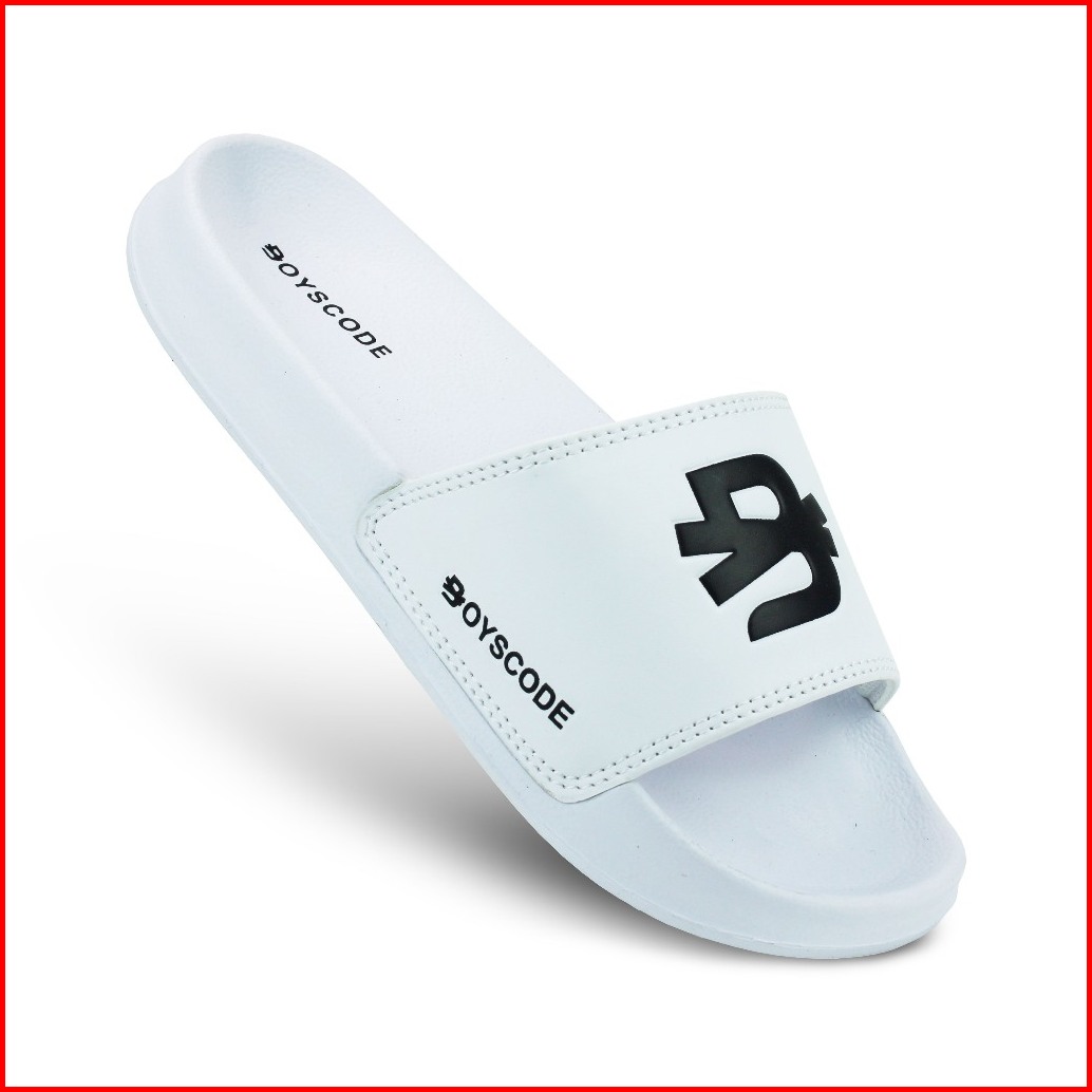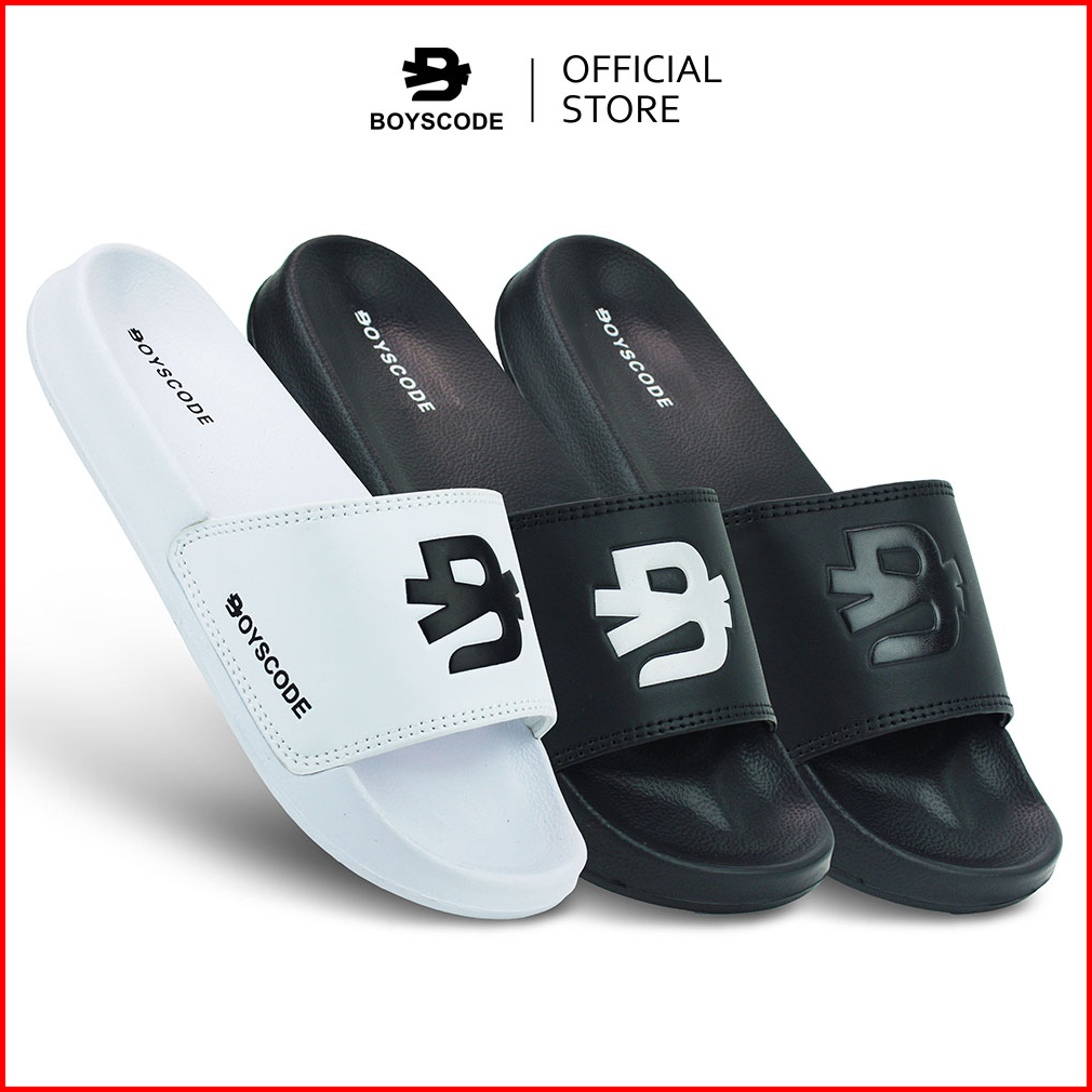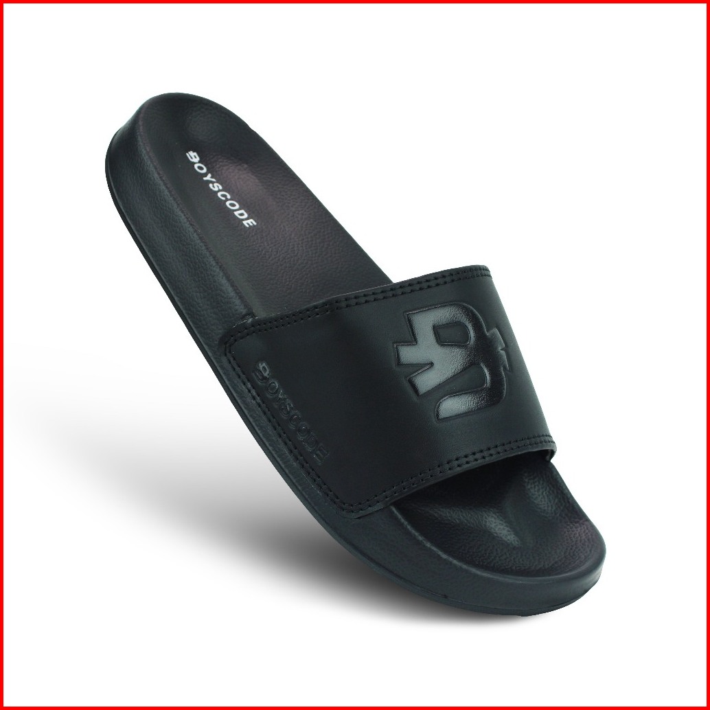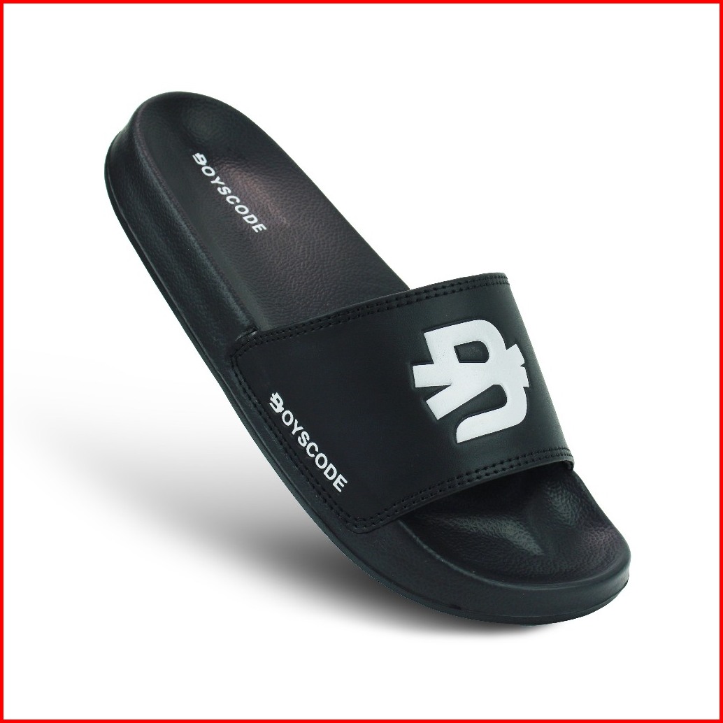 Boyscode Sendal Selop Karet Pria Wanita Motif Big Logo Hitam Putih Fullblack Slip On Slide