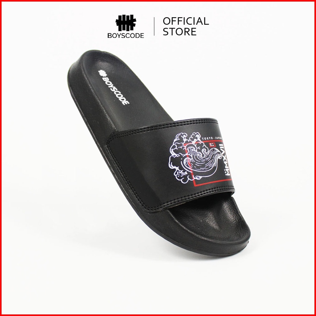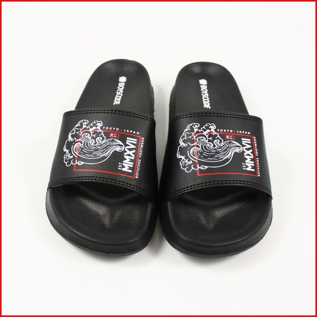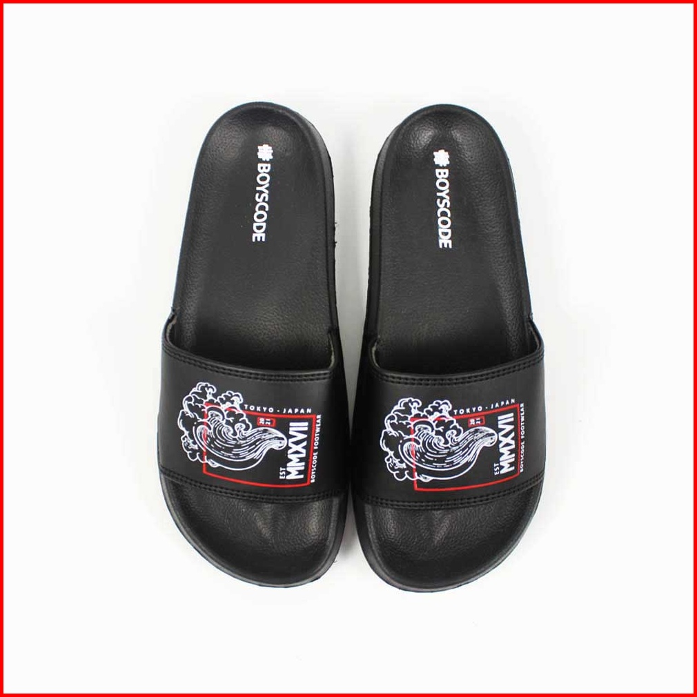 Boyscode Sendal Selop Pria Wanita Distro Japanesse Wind Black Sendal Slip On Pria Sendal Slide Pria
