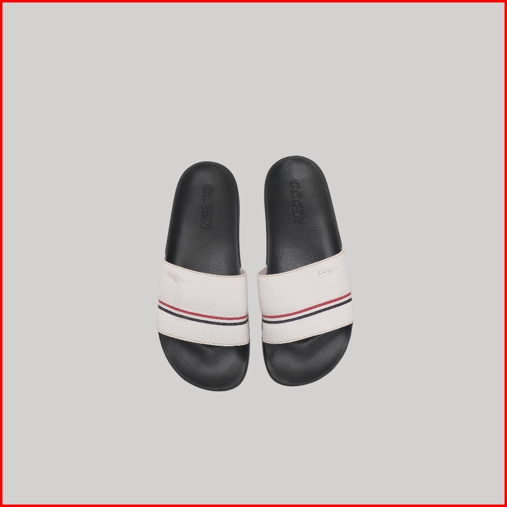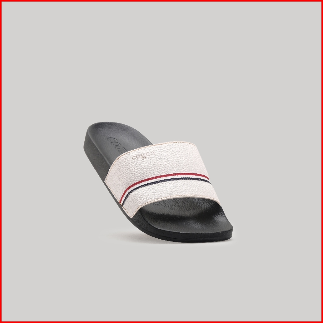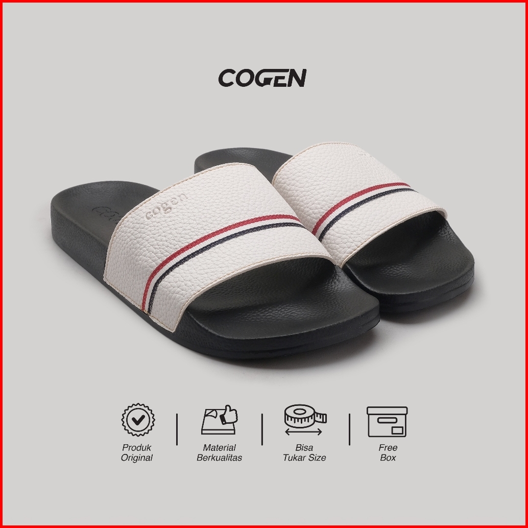 Cogen Sandal Slop Pria Kulit Rubber - Stripe White