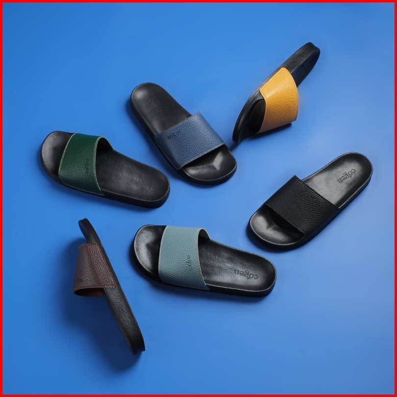 Cogen Sandal Slide Slop Basic Pria Rubber Kasual Premium Leather