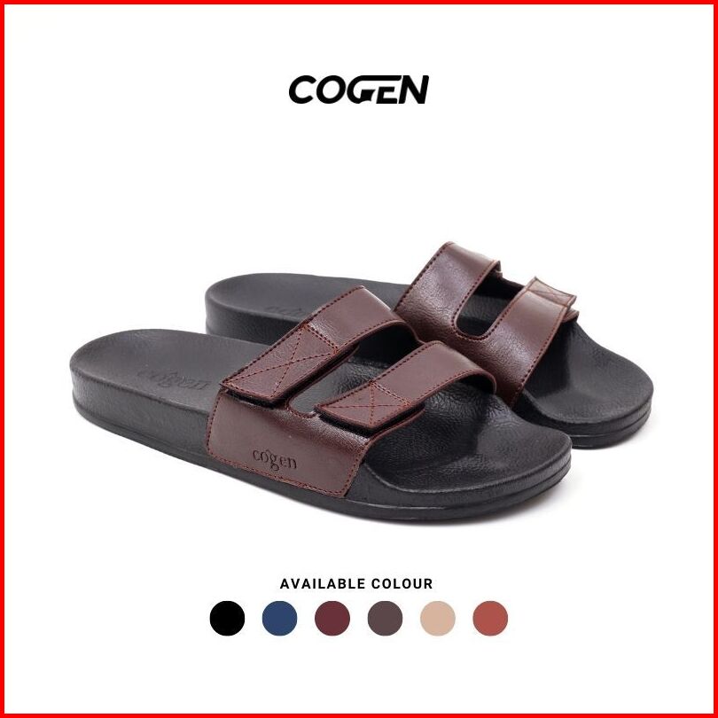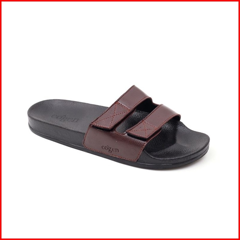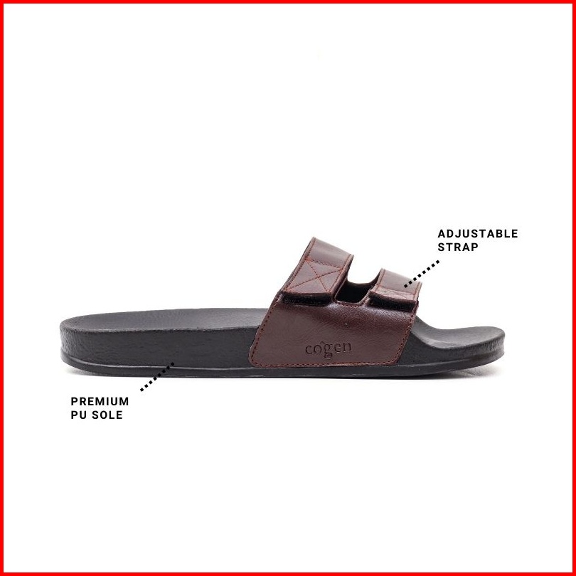Cogen Sandal Slide Cowok Cewek Sendal Strap Unisex Basel Collection - Brown