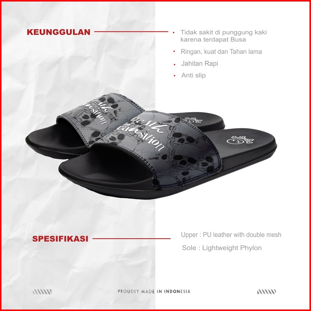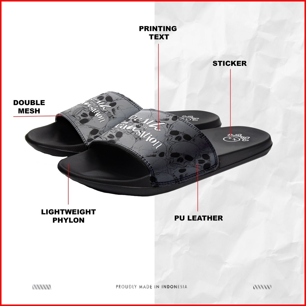 Sun Casual - Skull Grey White Slippers Slide Sandal Pria Sandal Wanita Sandal Unisex