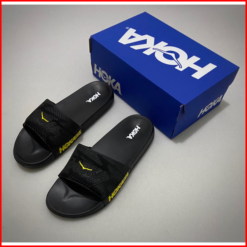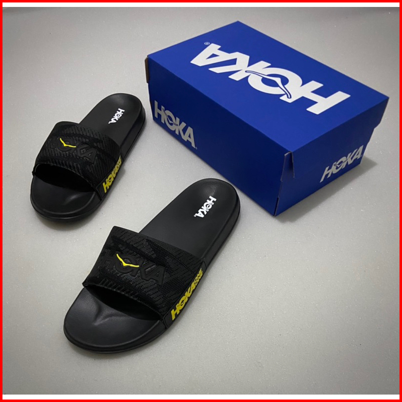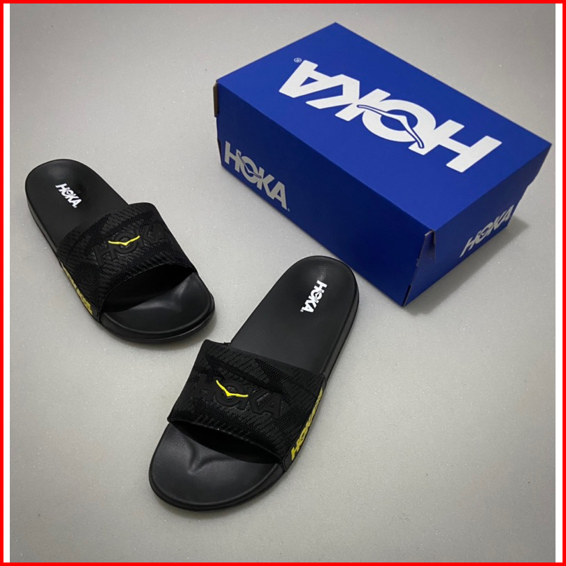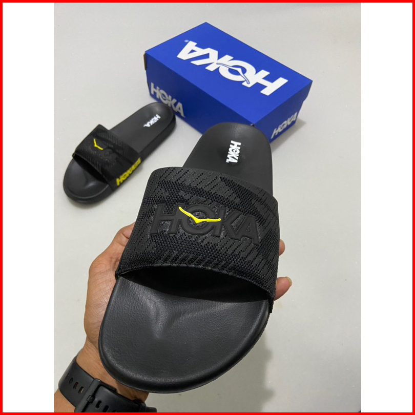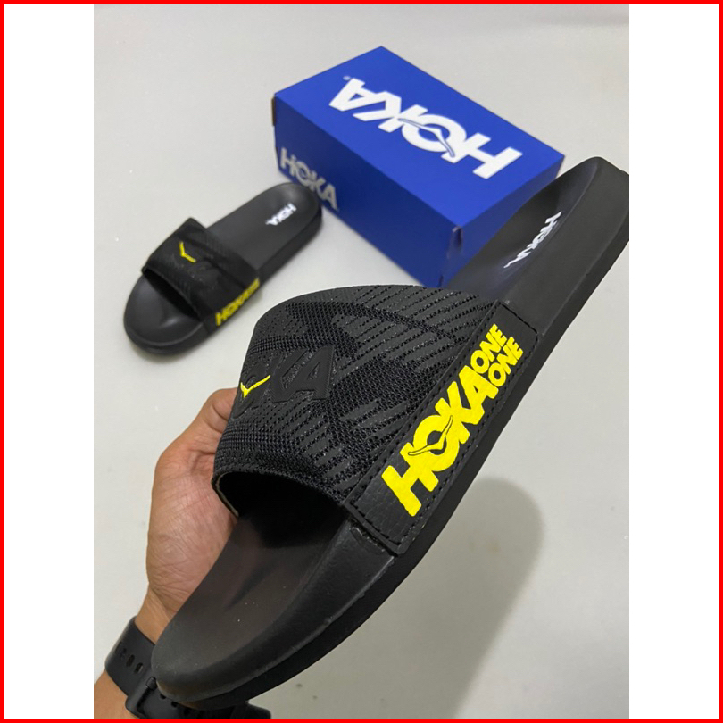 Sandal Slip-on Hokk One One Hitam Lis Kuning Fre Boxs