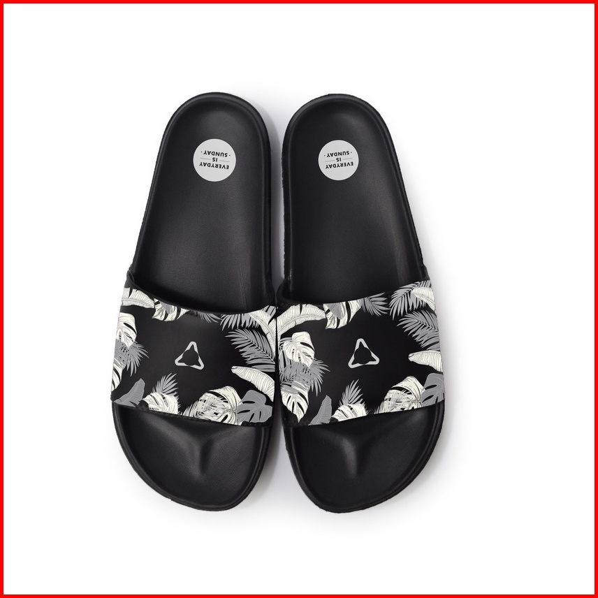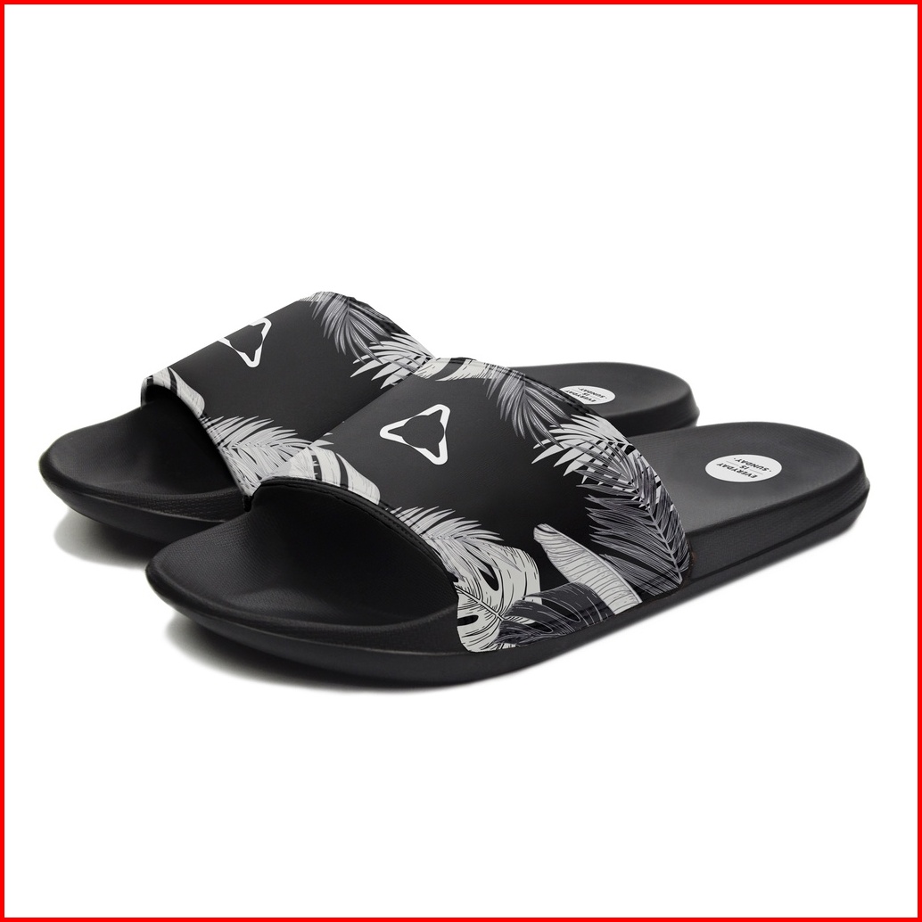 Sun Casual - Monstera Black White Slippers Slide Sandal Pria Sandal Wanita Sandal Unisex
