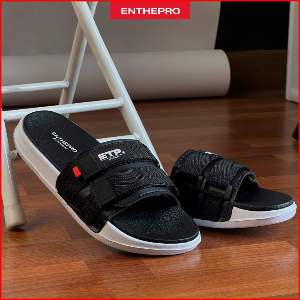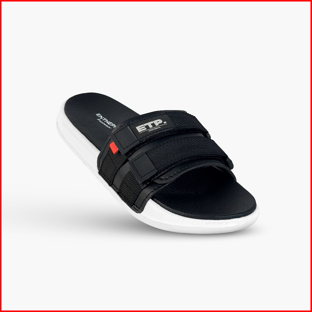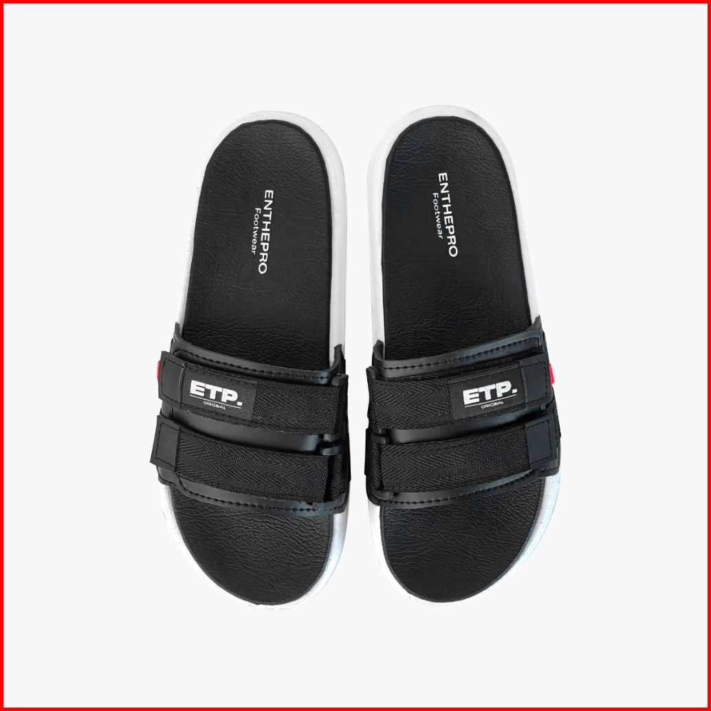 Enthepro - Slippers Etp Strap Black White Sandal Slide Pria Sandal Pria